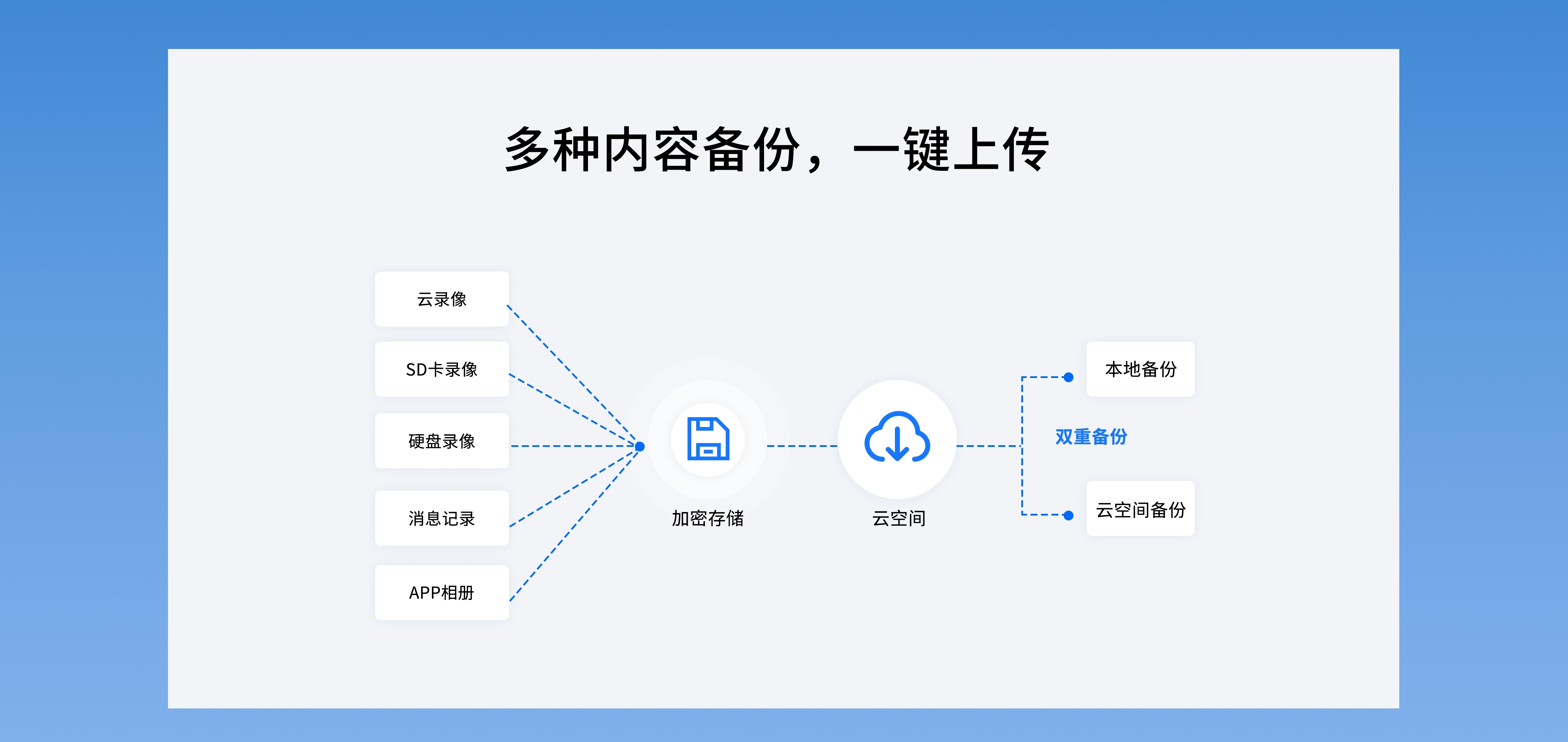 云空间内容也不会丢失、损坏。相对SD卡更安全可靠、长久有效。