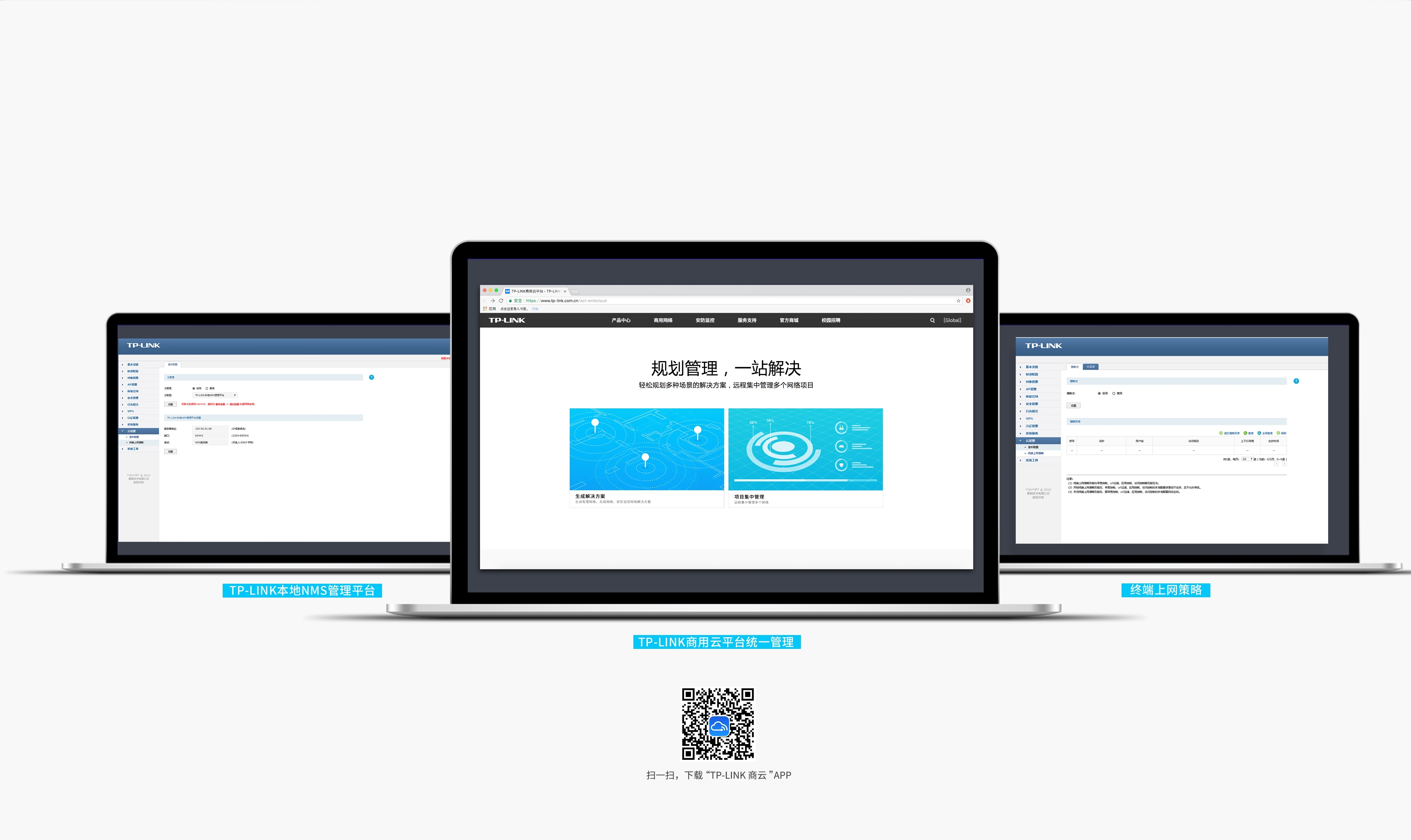 包括TP-LINK商用云平台/TP-LINK本地NMS管理平台/终端上网策略,可根据需求统一管理、