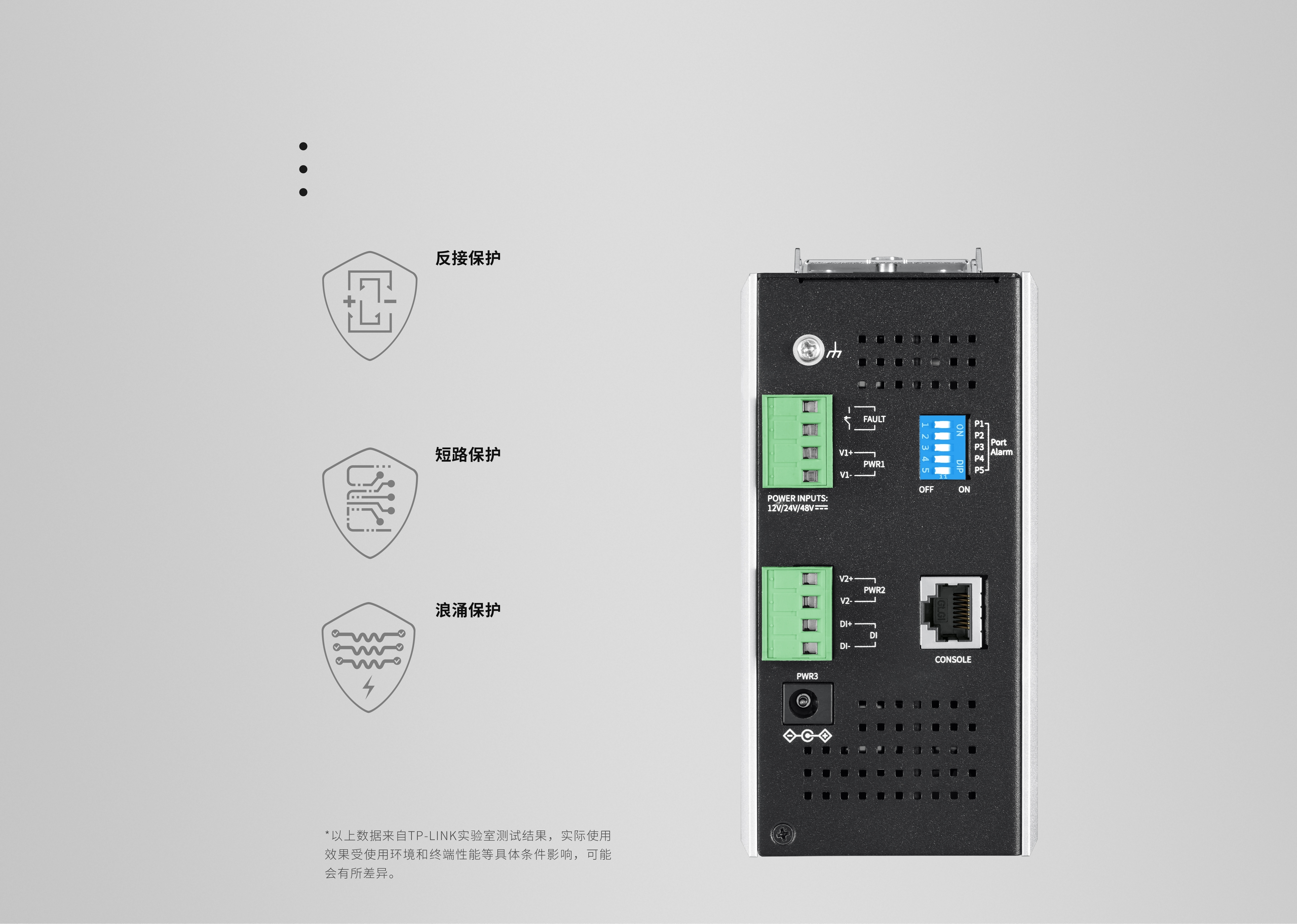 提供三种电源防护保护,大大提高交换机供电的可靠性。