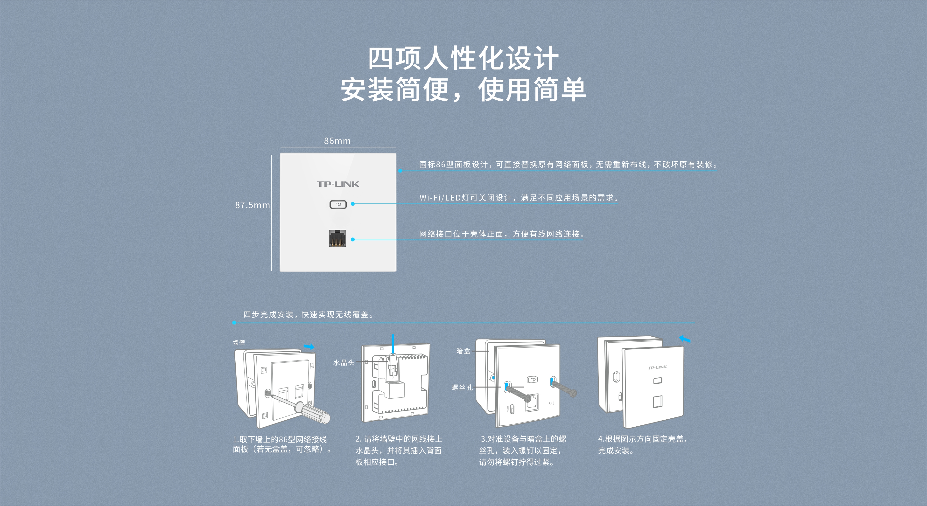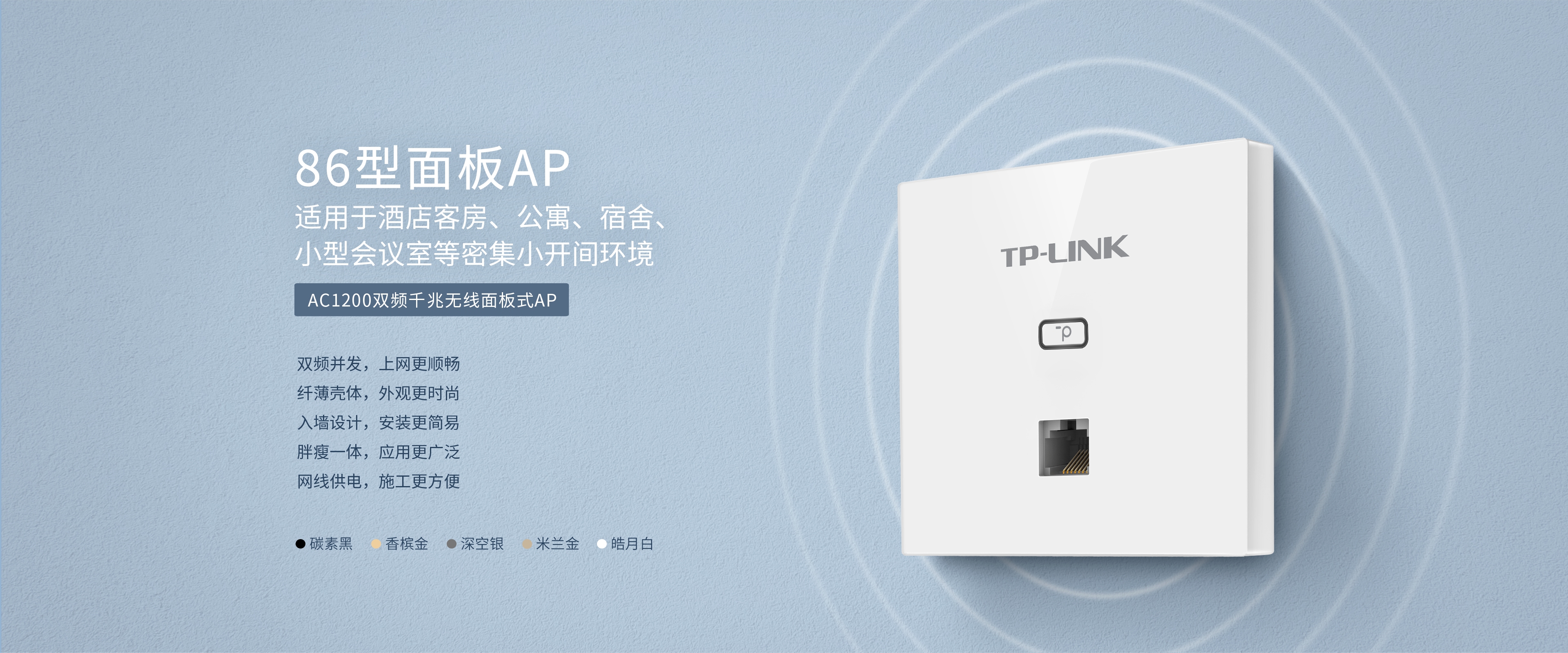 AC1200双频千兆无线面板式AP 碳素黑