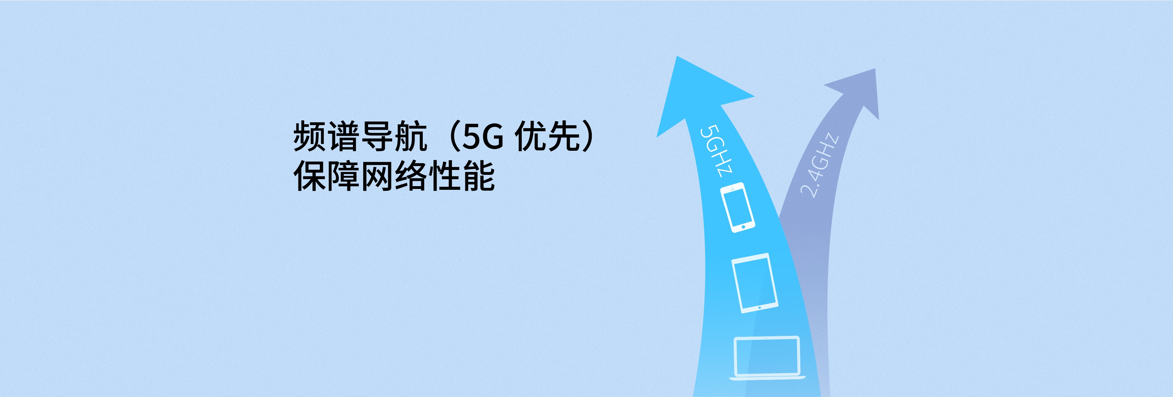 5GHz射频上,使2.4GHz和5GHz两个频段负载更均衡,避免
