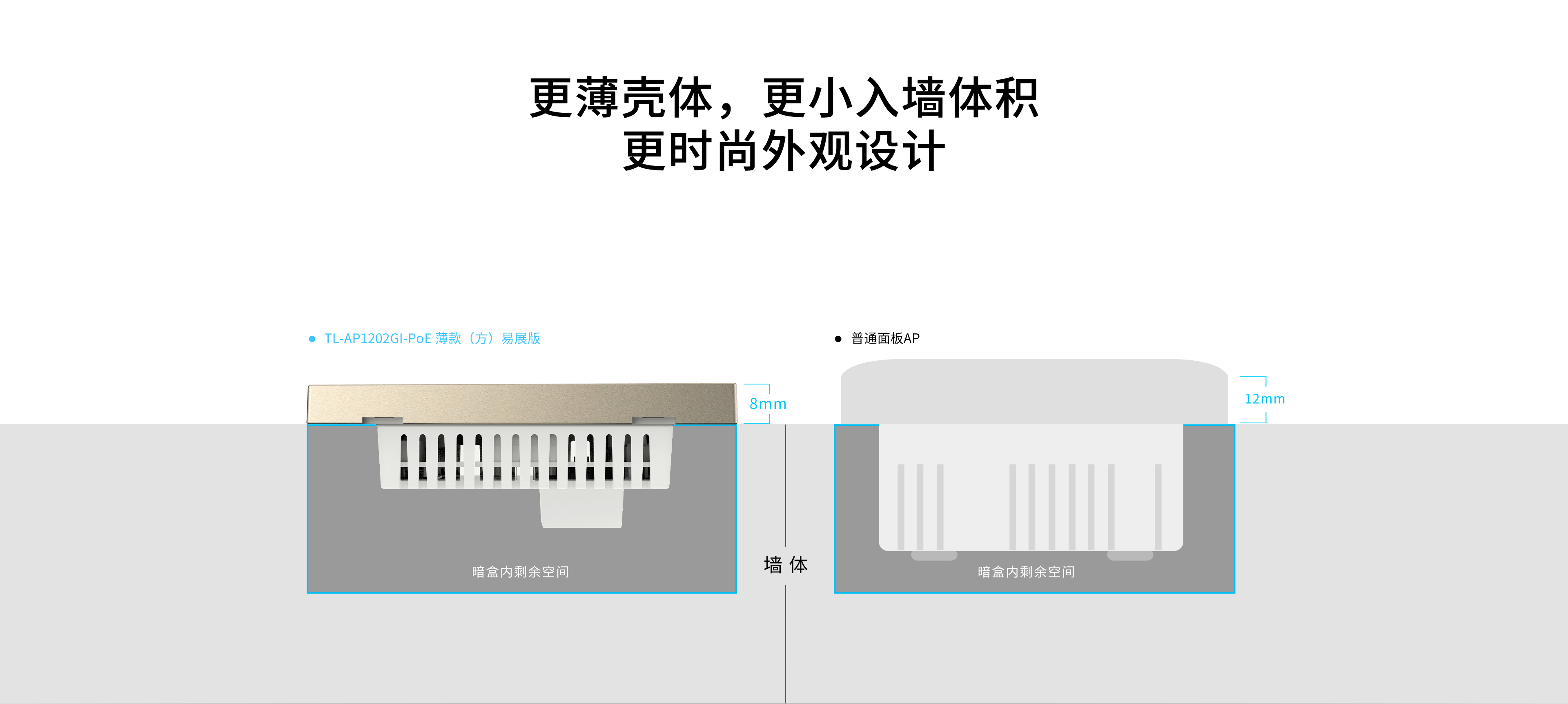 沉入墙体结构优化,缩减入墙体积,有效避免安装时暗盒内干涉。