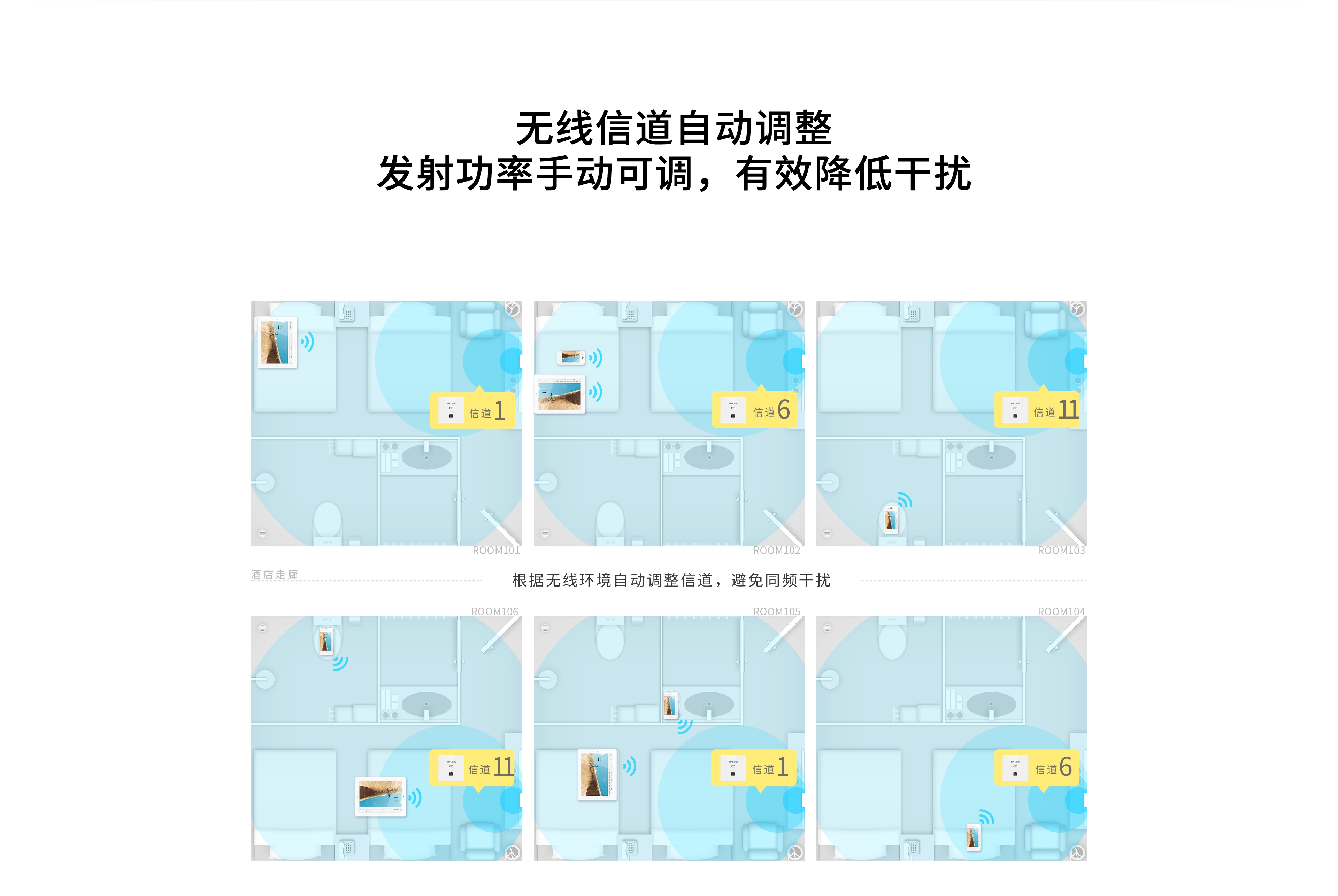 新增AP接入无线覆盖网络时,会自动工作在干扰小的信道中,并可手动调整发射功率大小,