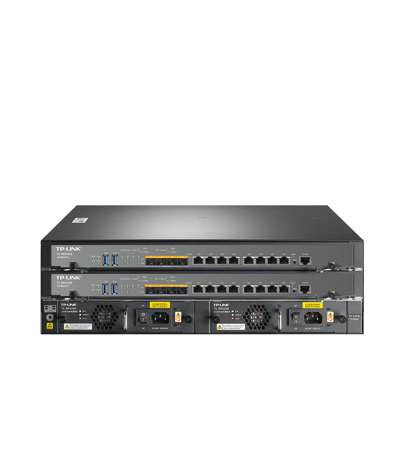 每个TL-SRU7008提供8个10/100/1000M RJ45端口,4个SFP(Combo)端口,可自定义端口类型,绑定多种逻辑接口,配置多个不同类型的线路,并提供1个console口和2个USB 3.0口,适应更多复杂的组网环境。