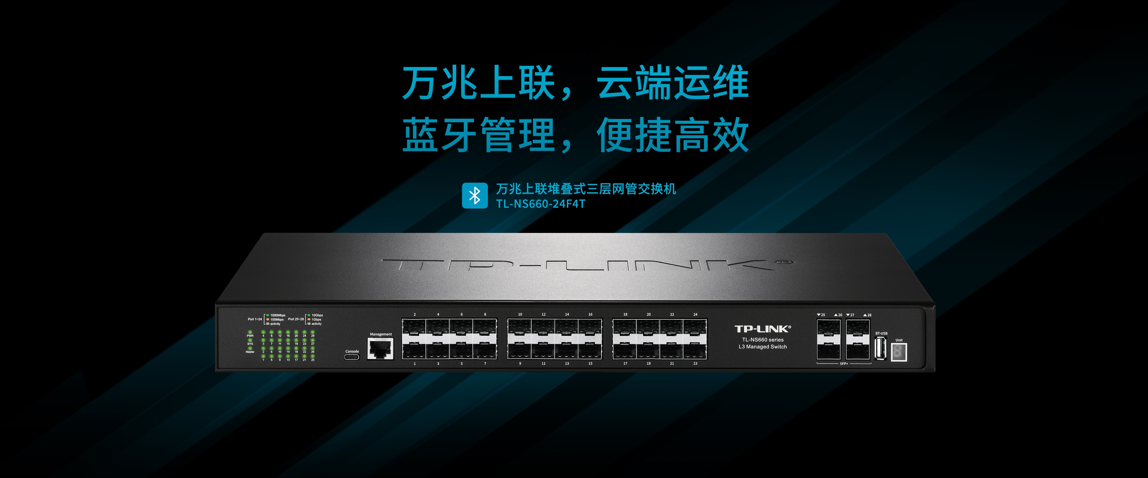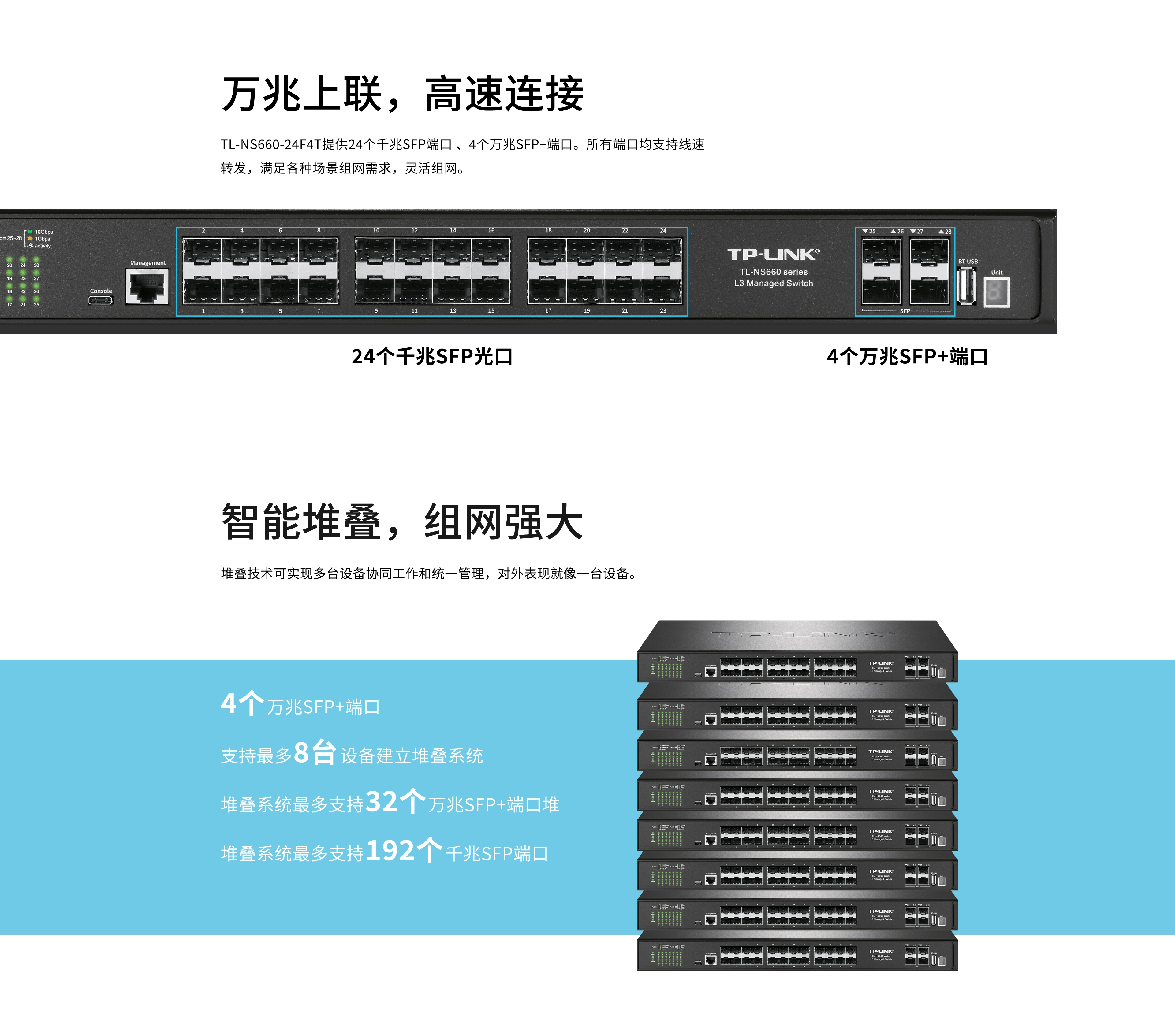 TL-NS660-24F4T是TP-LINK新推出的万兆上联堆叠式三层网管交换机,采用新一代高性能硬件和软件平台,