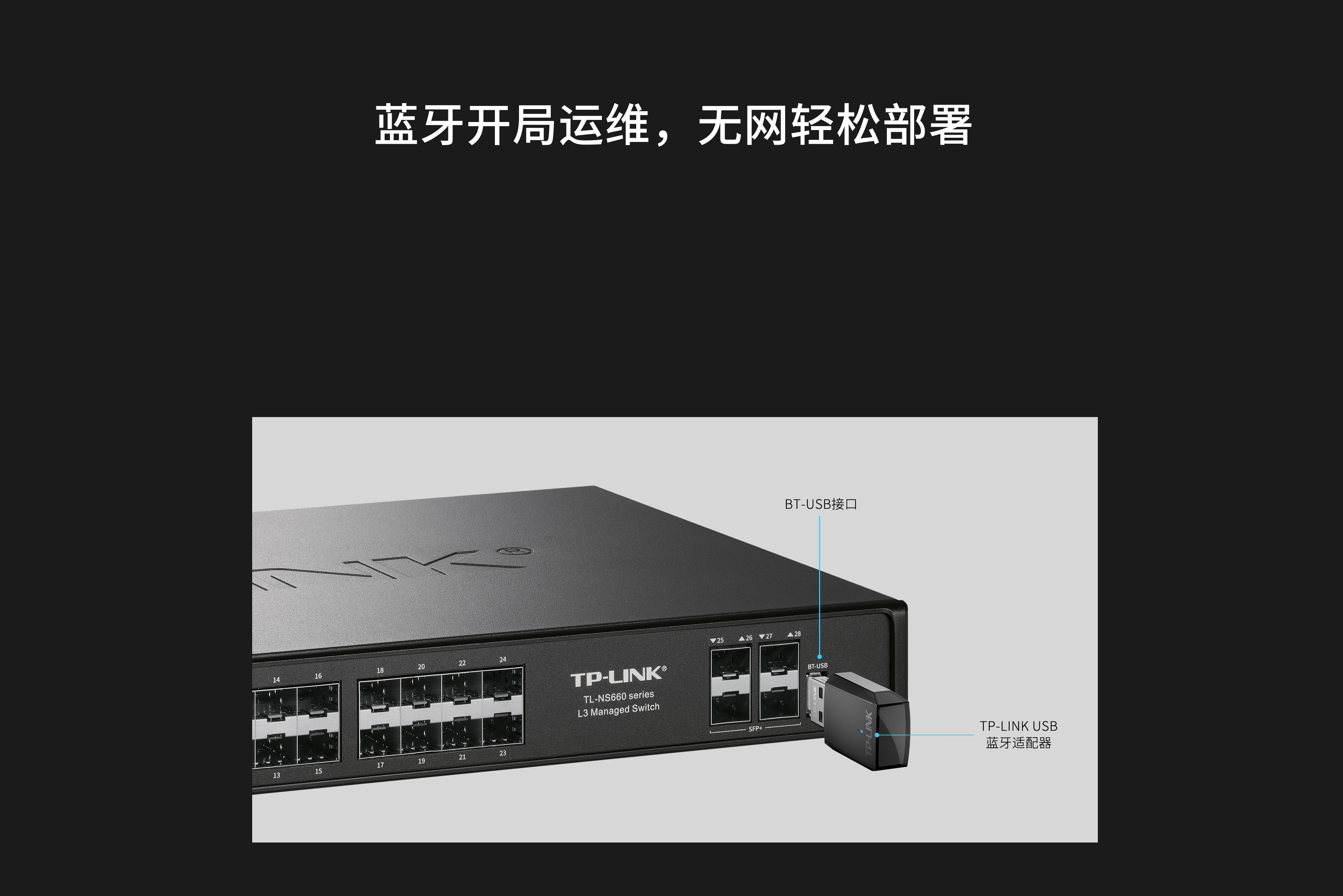 该系列交换机可经由USB端口外接蓝牙适配器,通过蓝牙通信实现