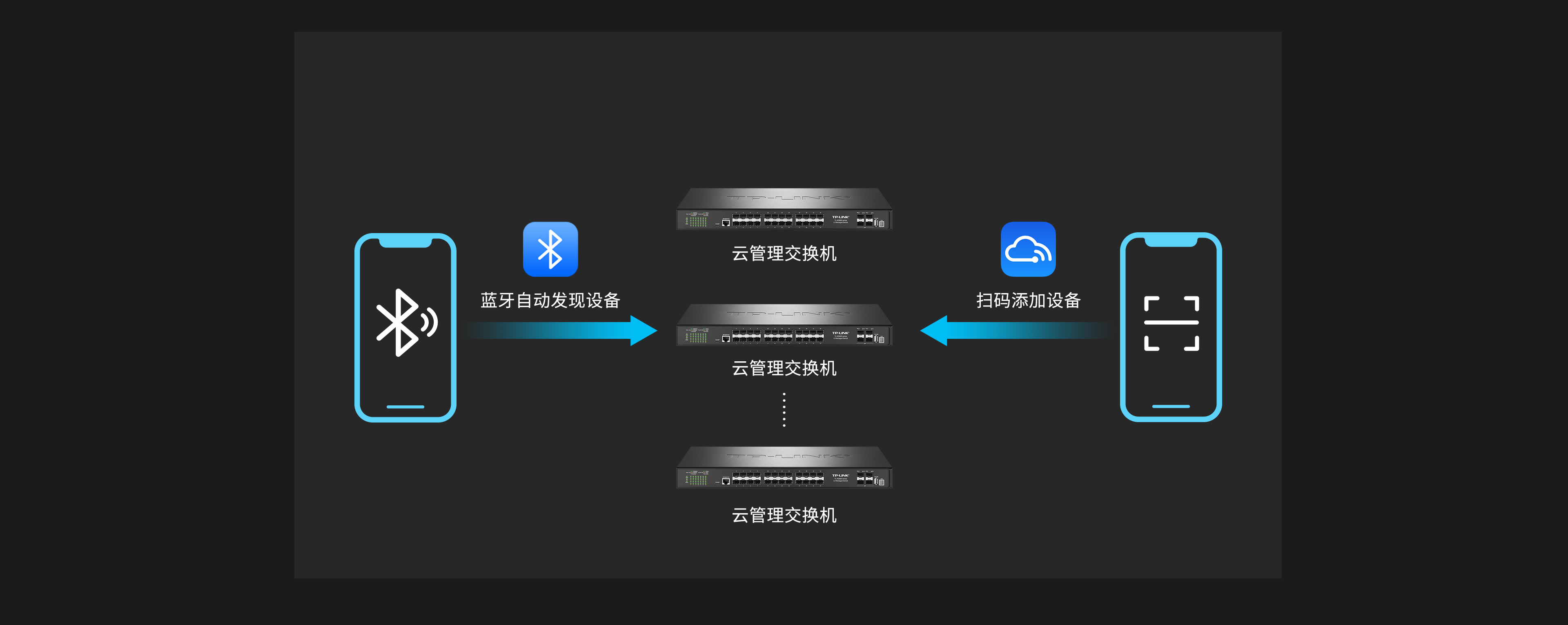 交换机新增蓝牙运维功能,支持手机在TP-LINK商云APP端通过蓝牙连接交换机,进行