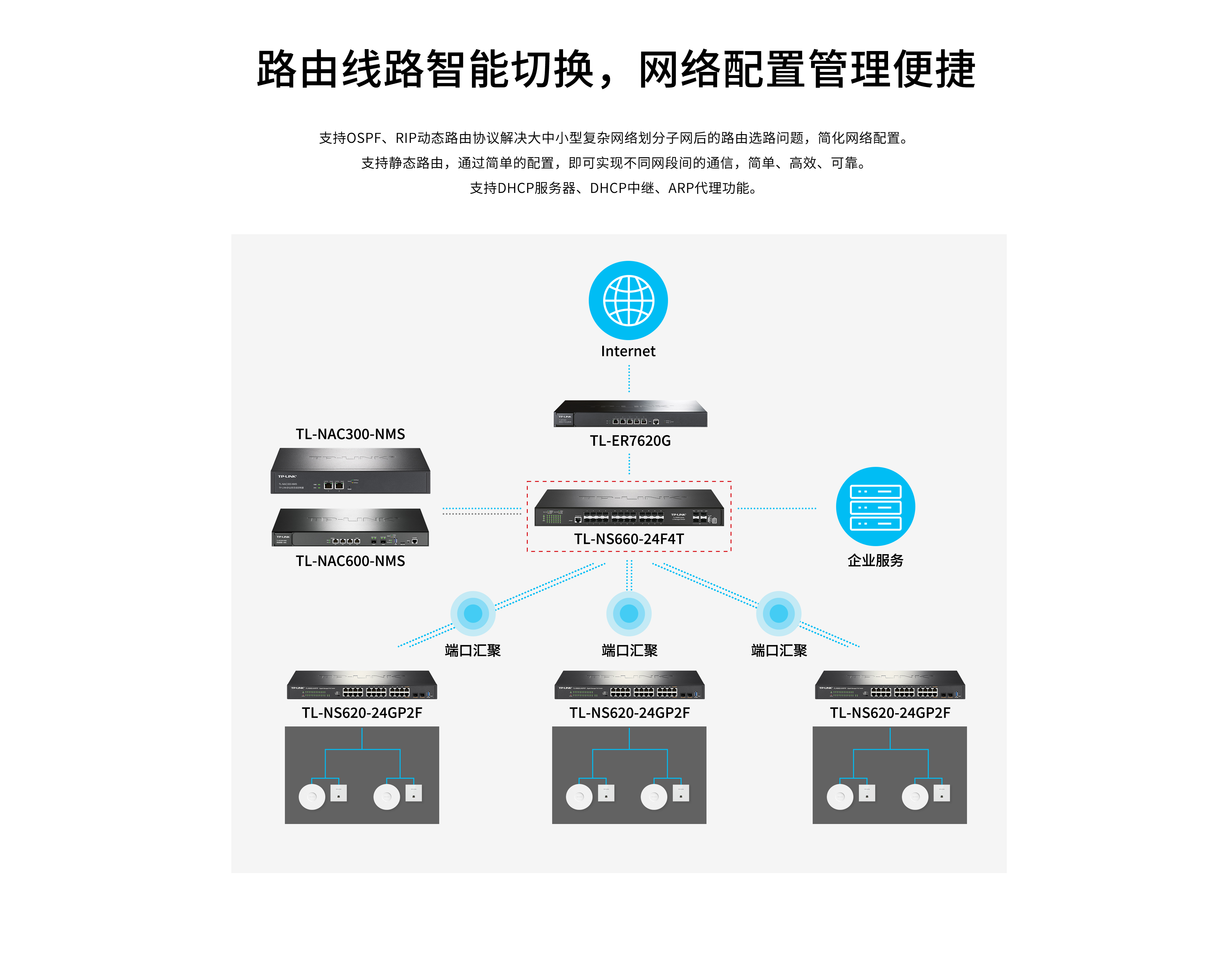 - 支持OSPF、RIP动态路由、静态路由
