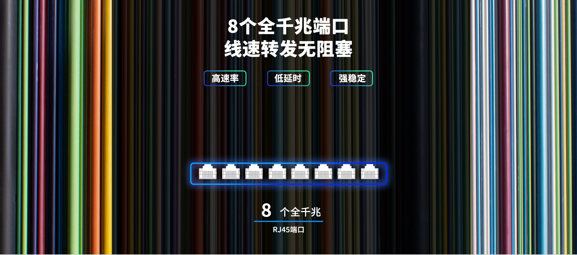 TL-SG2008M提供8个10/100/1000Mbps RJ45端口,