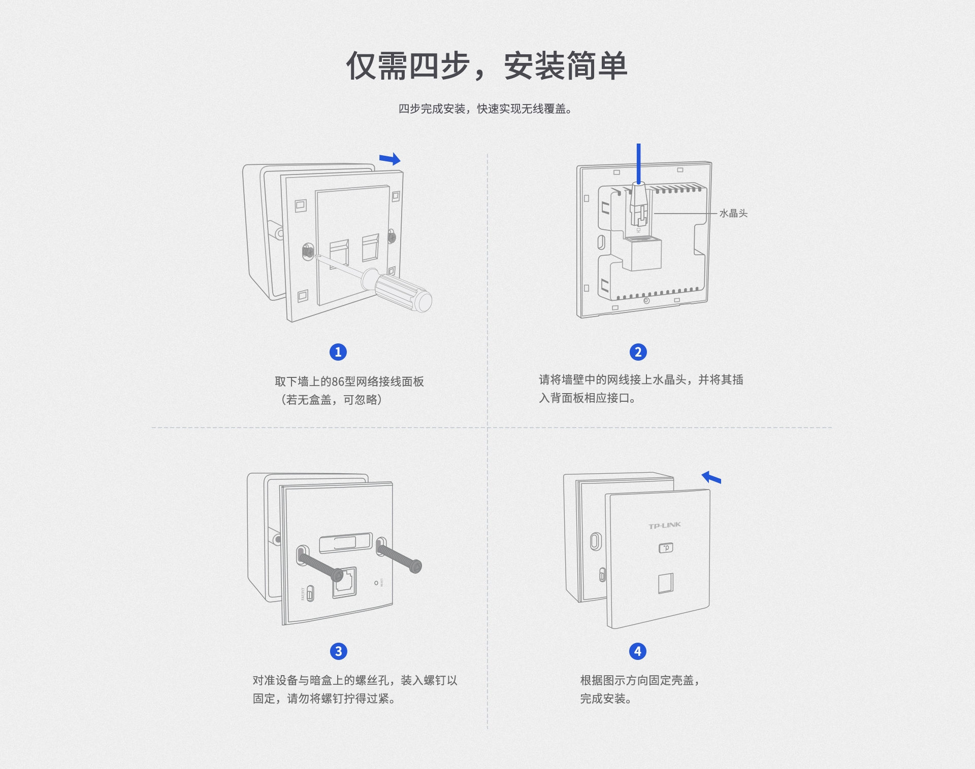易展版面板AP使用最新的TP-LINK “易展”技术,支持所有TP-LINK “易展”