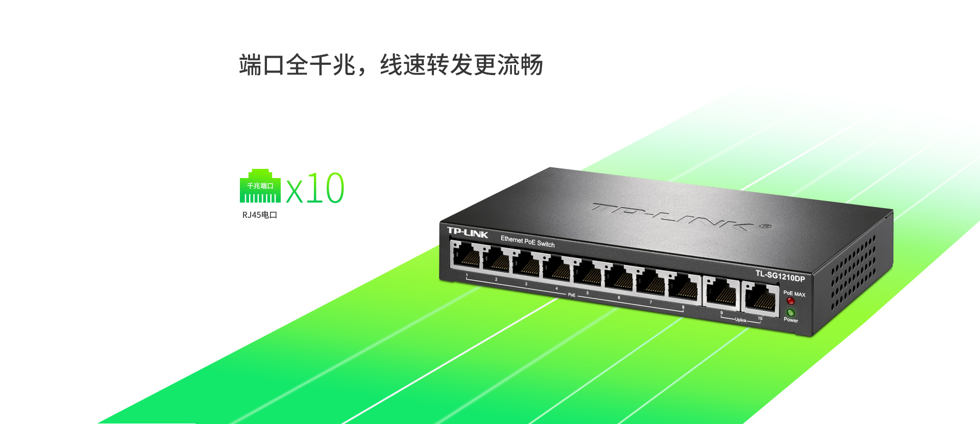 配备10个千兆RJ45端口,采用存储转发机制,内部集成高容量缓存,