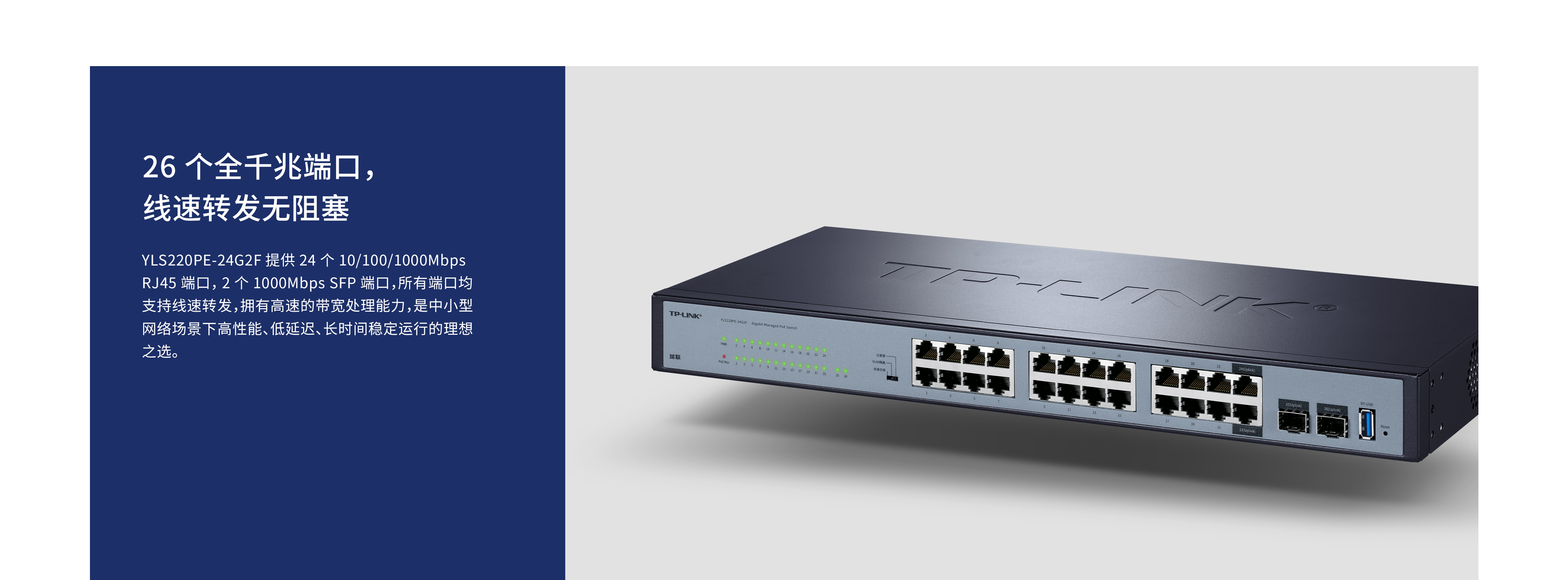 - 24个10/100/1000Base-T RJ45端口,2个千兆SFP光口