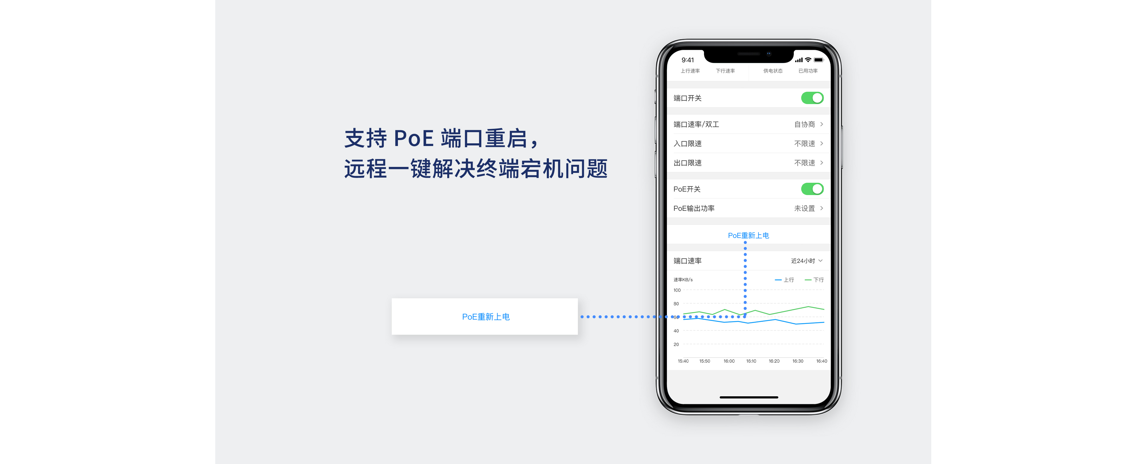 PoE终端宕机时,只需远程重启终端对应的PoE端口,