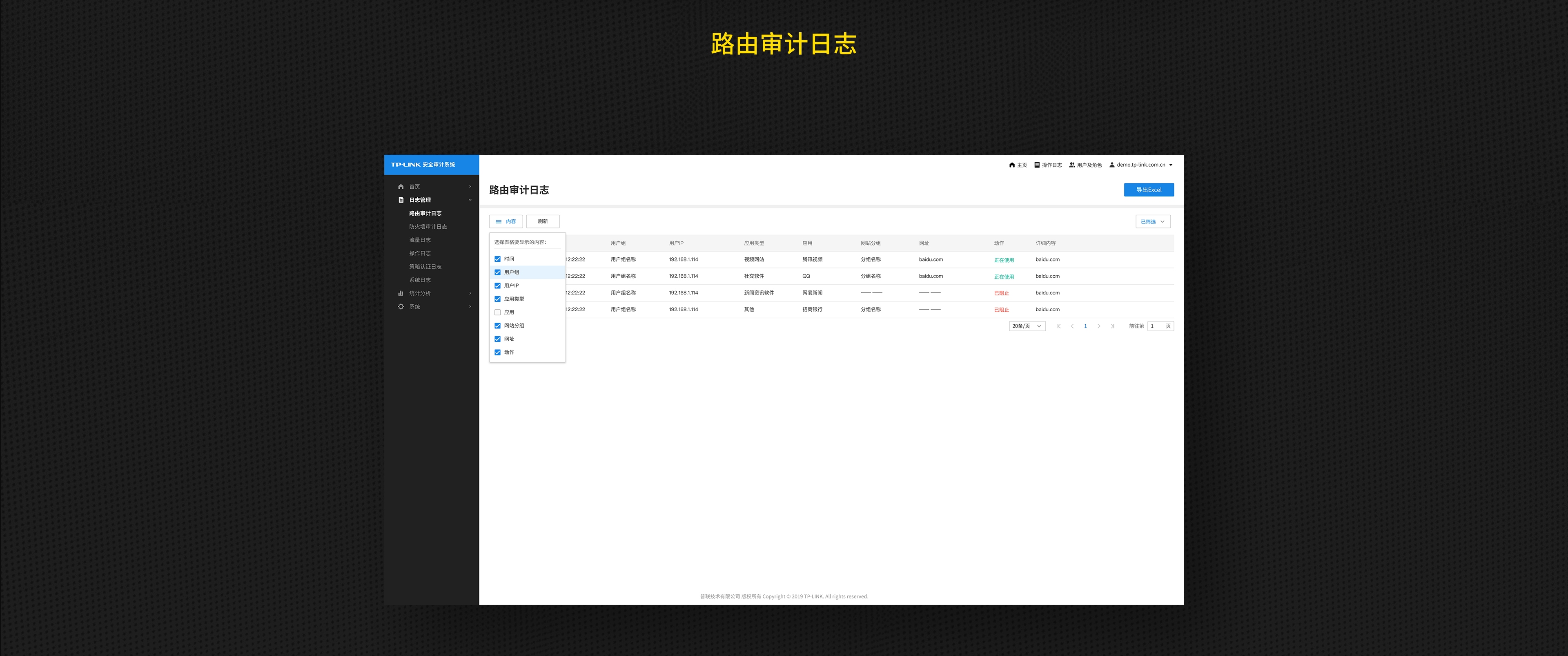 TP-LINK安全审计系统能够监控所有进出防火墙的数据流和来访者,实时监控并全面审计防火墙日志,