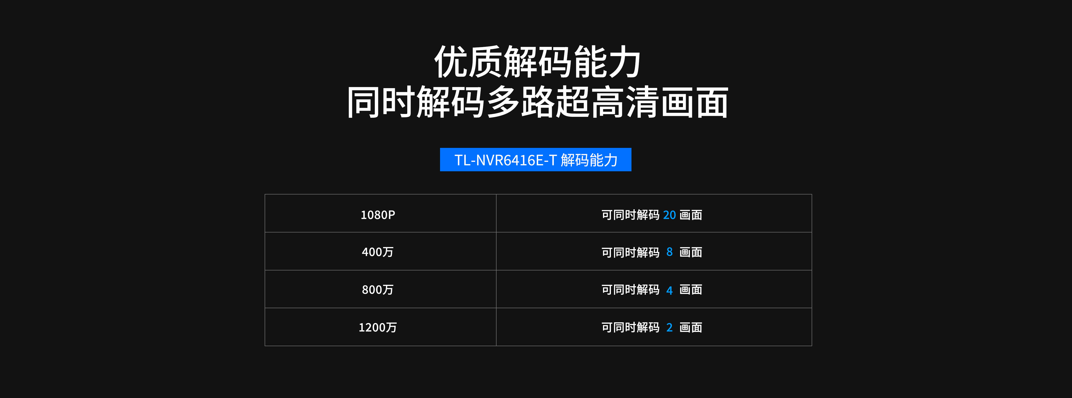 - 支持20路1080P同步解码,高清预览&回放