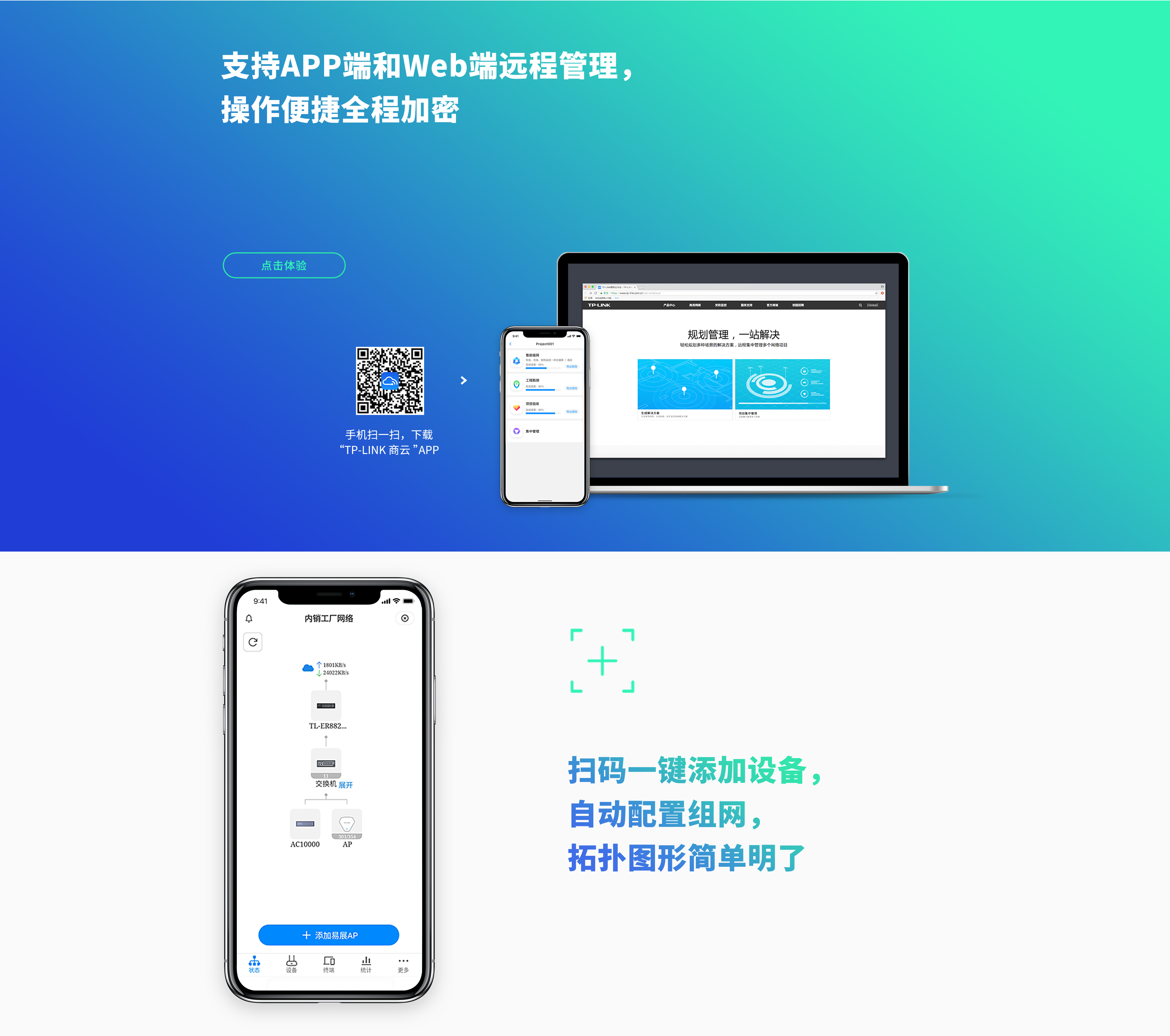 作,轻松便利。同时提供TP-LINK商用网络云平台,也可通过Web端对设备进行管理。在整个管理过程中,