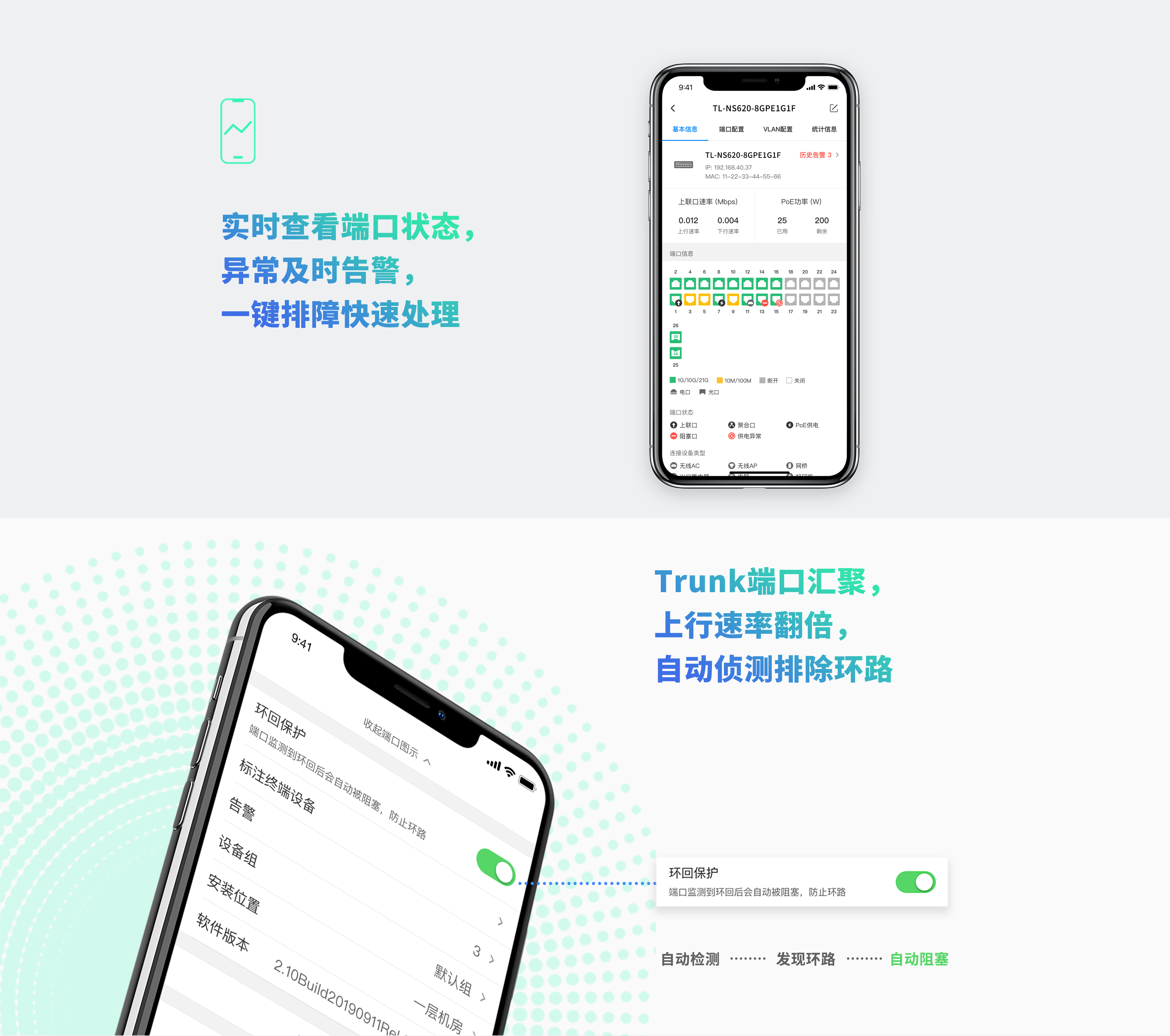 智能环路保护,自动检测网络拓扑,