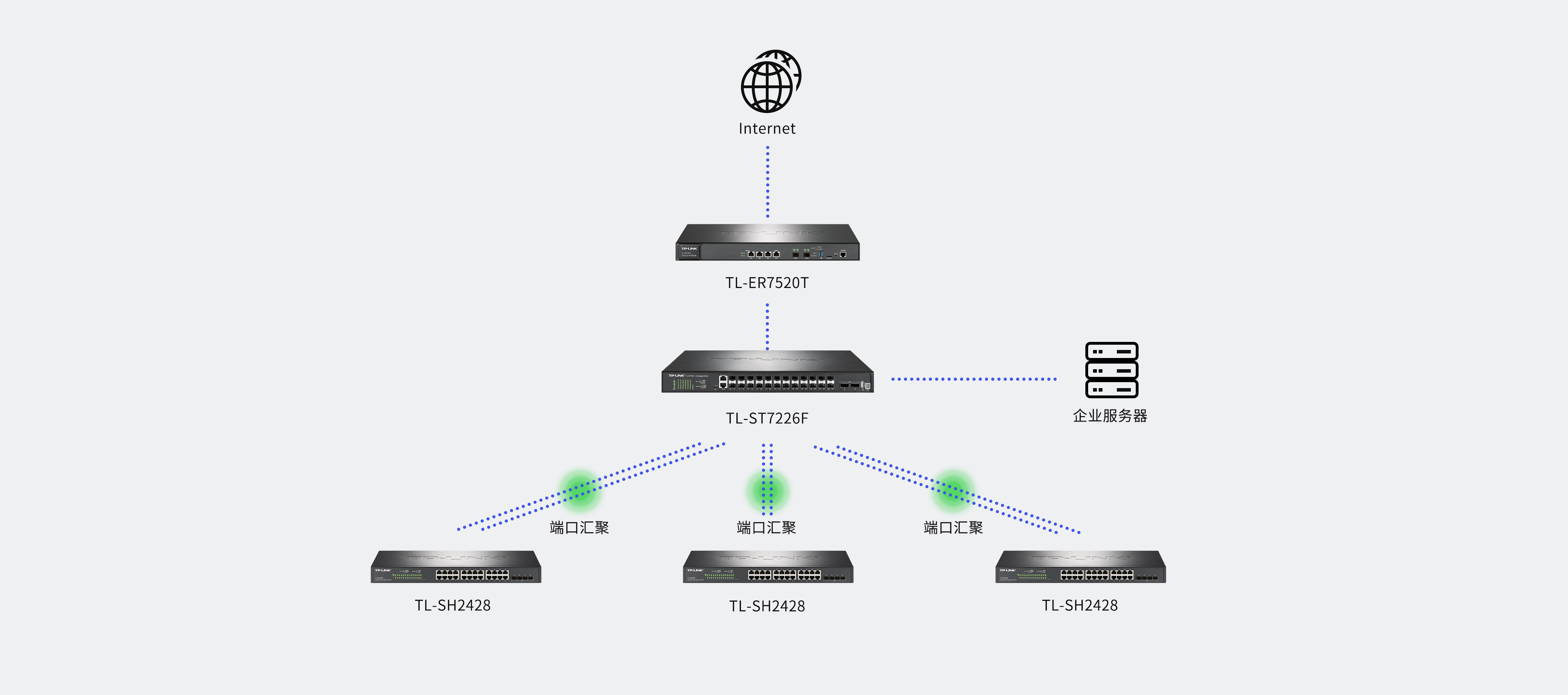 支持端口汇聚,提供更高带宽、更大吞吐量,