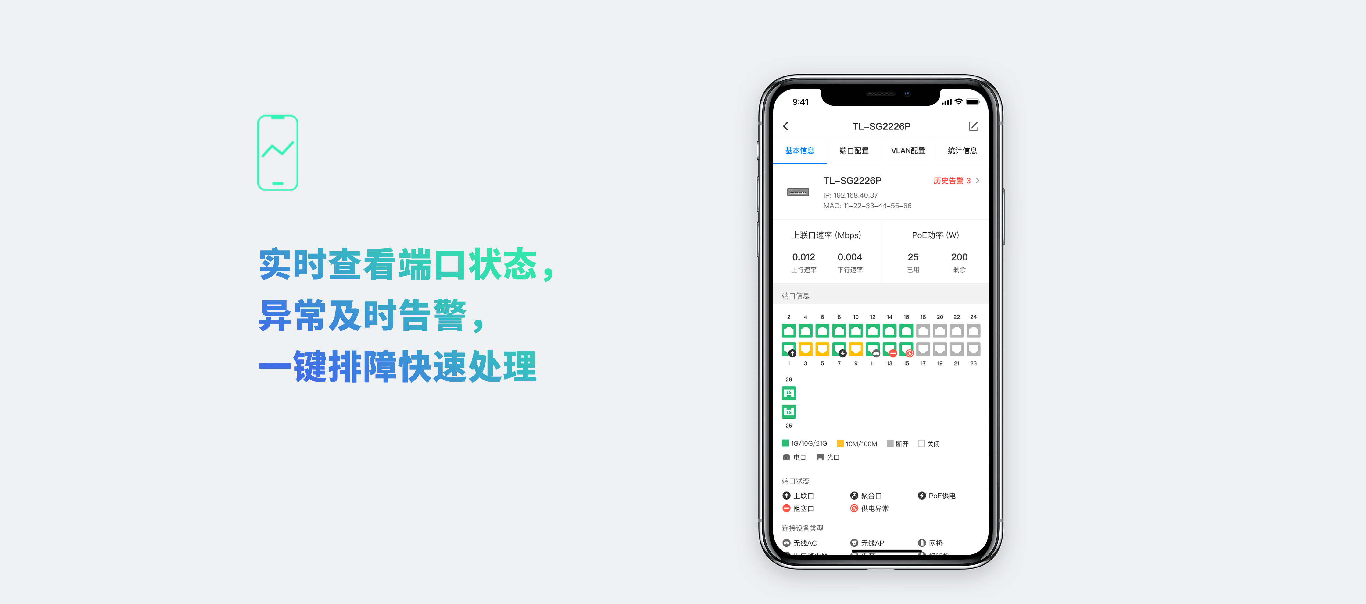 支持环路检测、IP冲突检测、线缆检测、端口镜像,