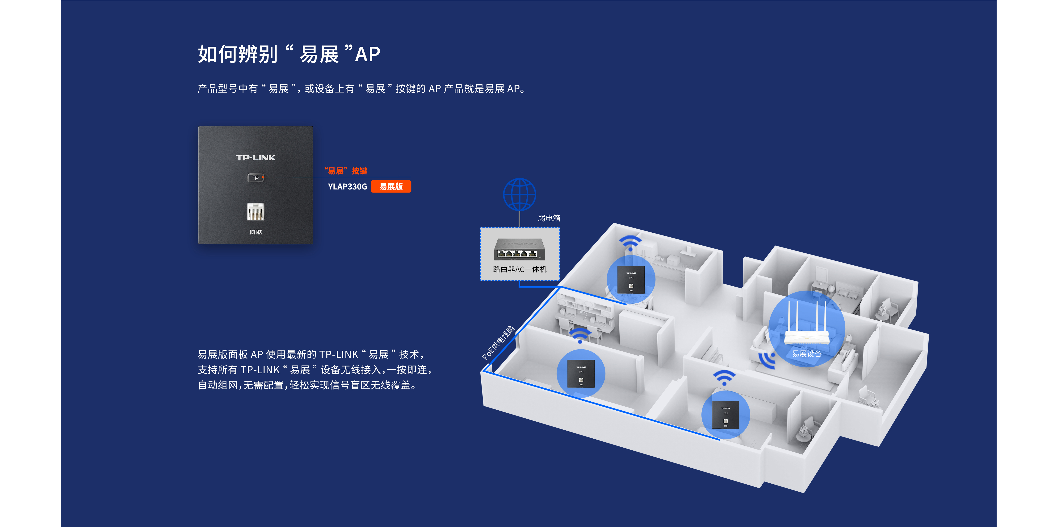 - 支持TP-LINK易展功能,简单按下按键,即可供TP-LINK易展设备无线接入