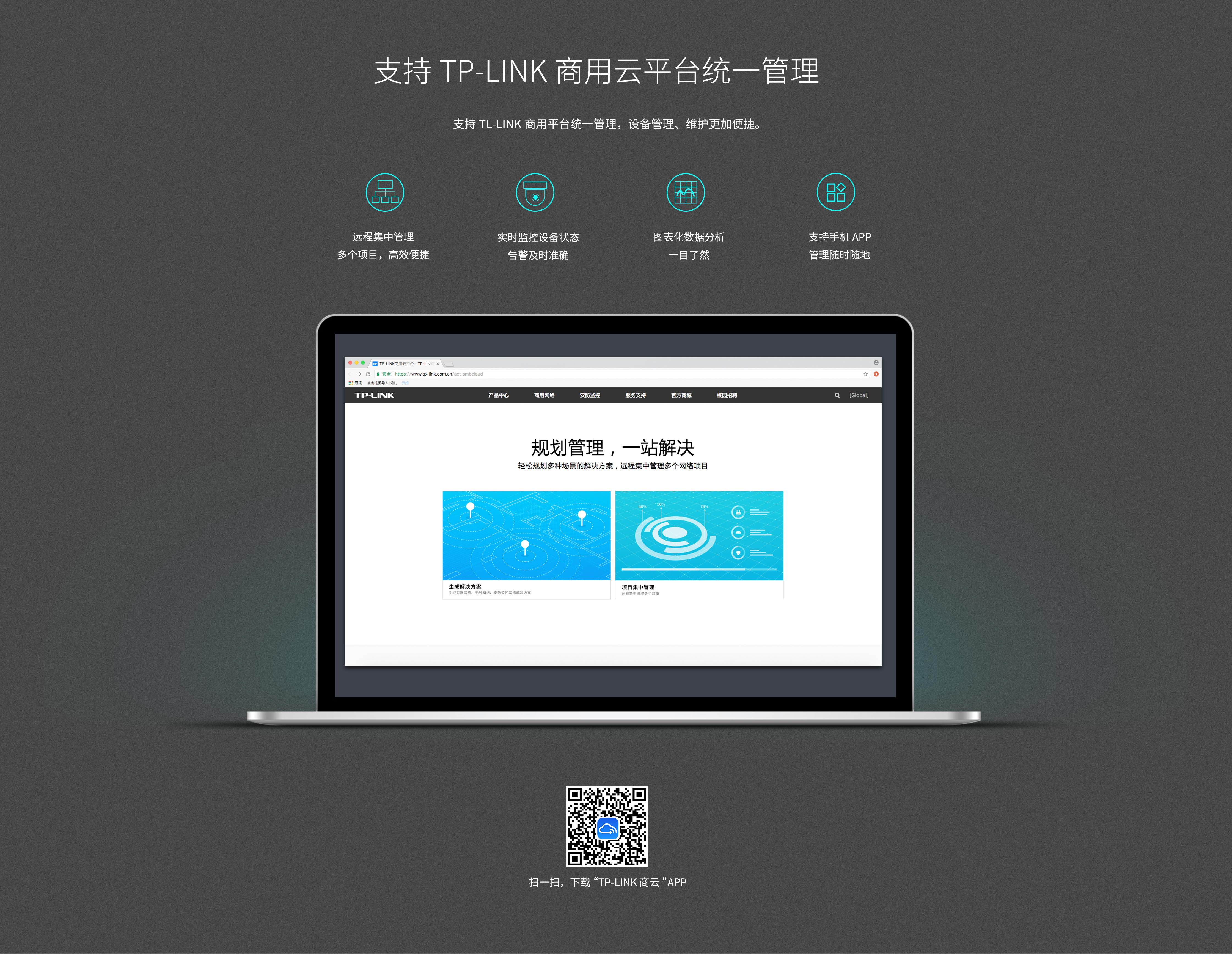 - 支持TP-LINK商用云平台远程管理,支持手机APP管理