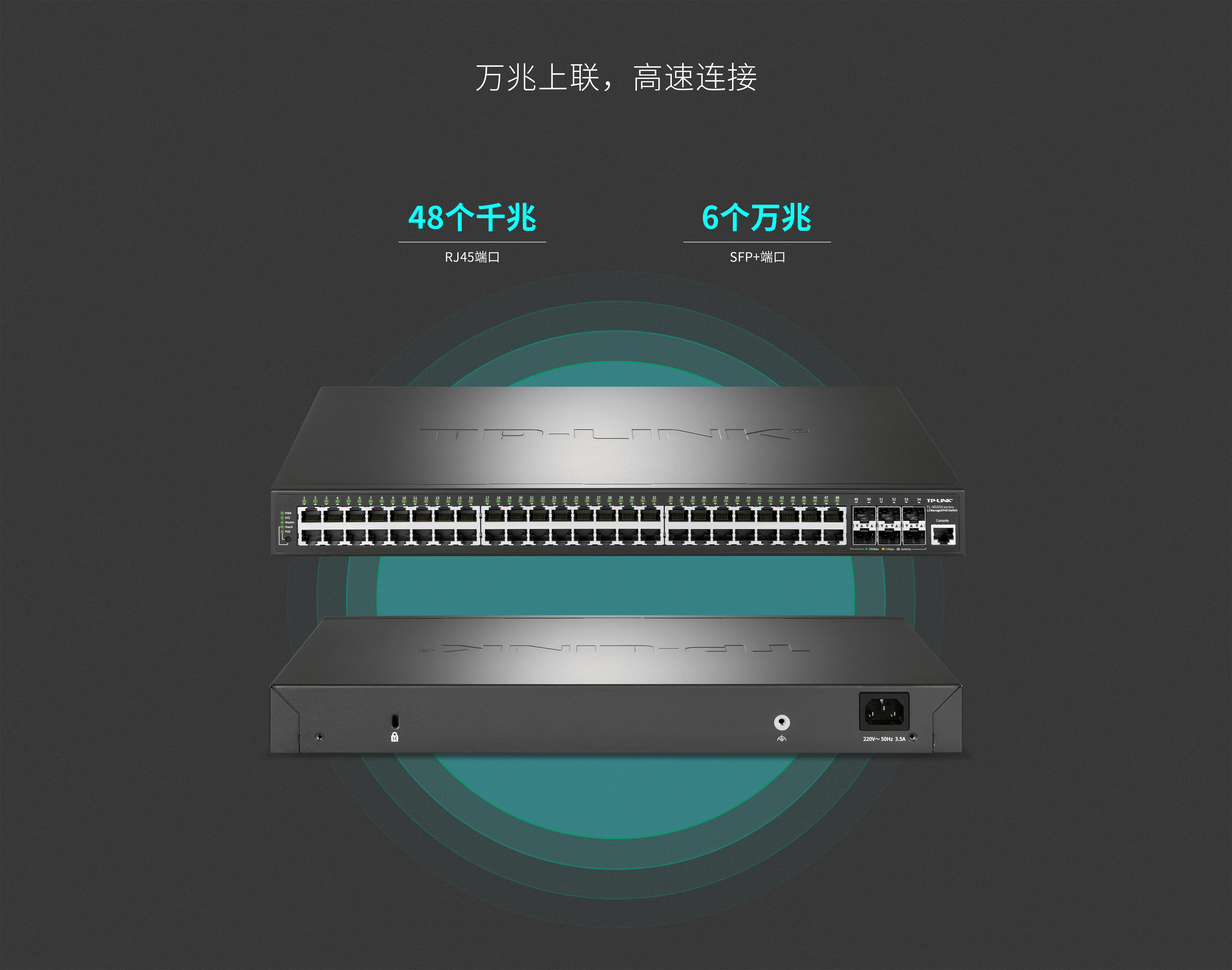 提供48个千兆RJ45端口、6个万兆SFP+端口。