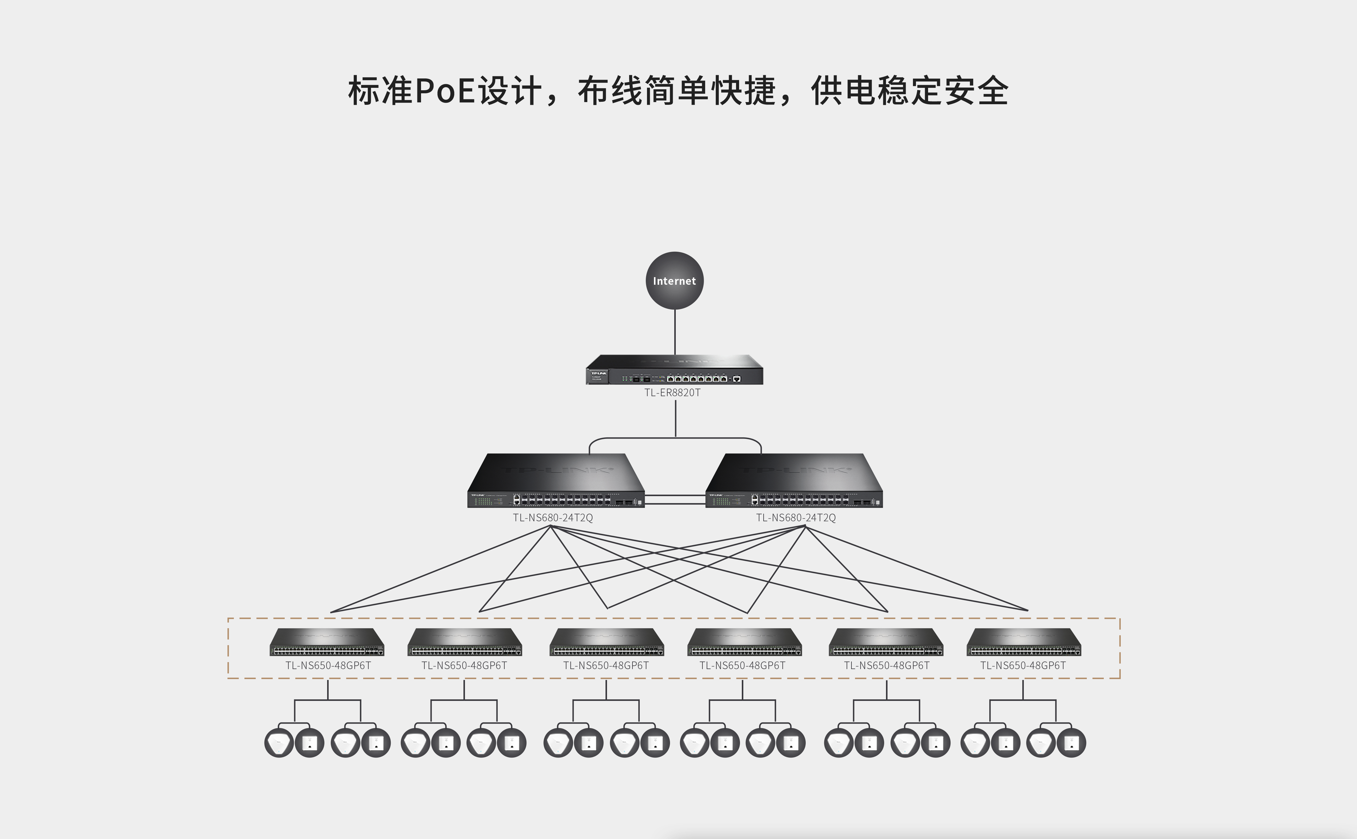 靠,布线简单,施工便捷。所有 PoE端口均支持供电优先级,保障高优先级端口的稳定供电。