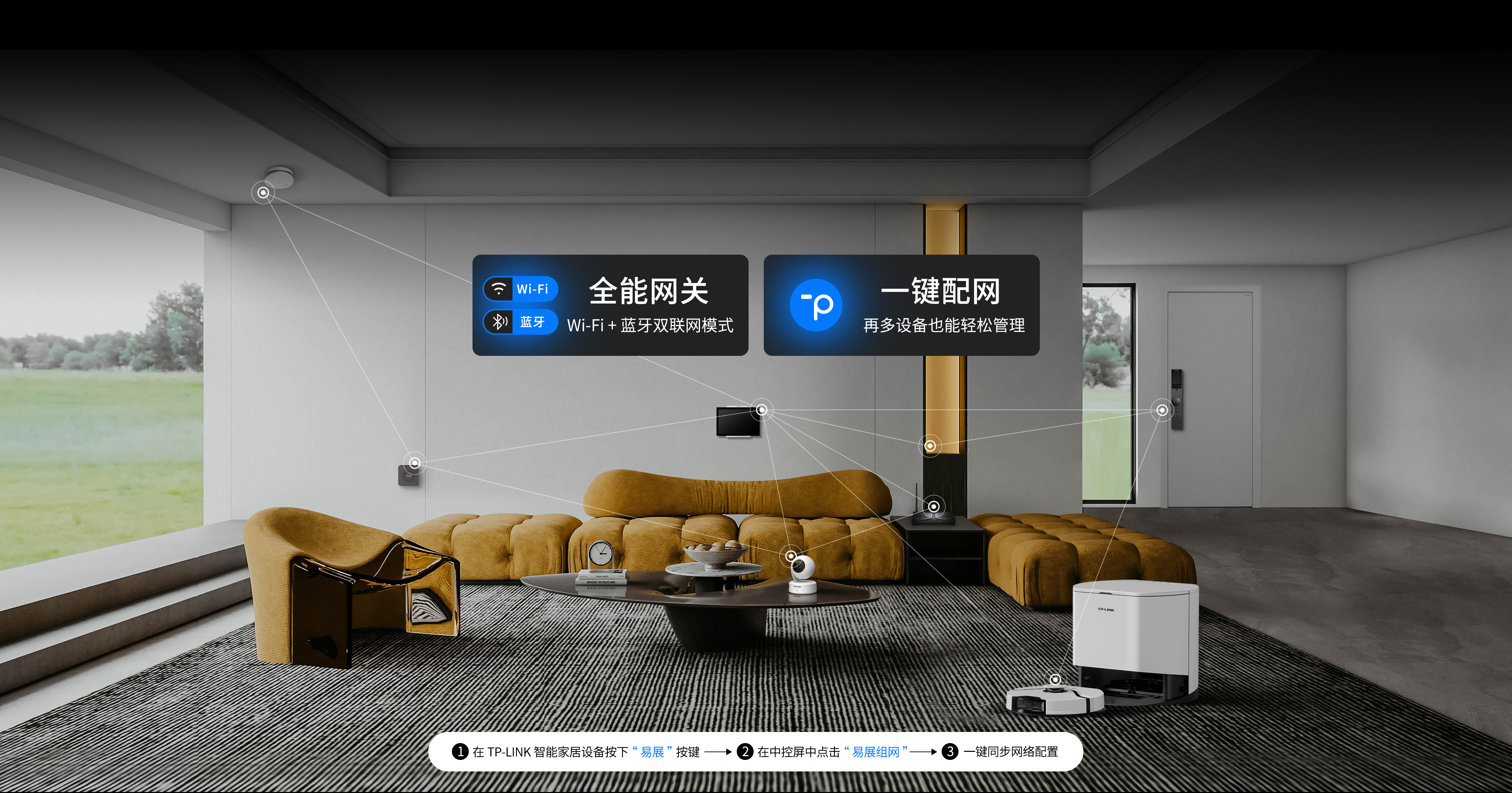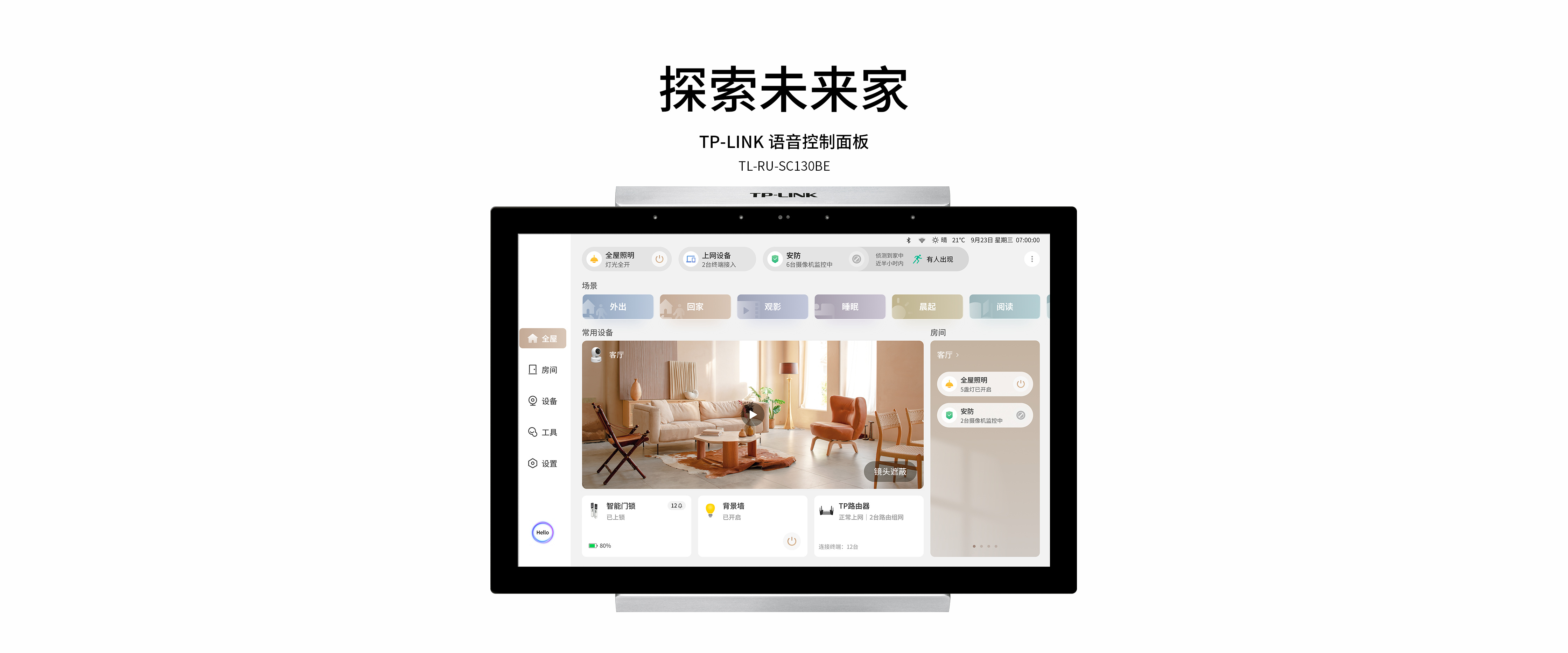 接入TP-LINK全屋智能生态,集中控制网络、安防、照明、遮阳、家电等智能设备,