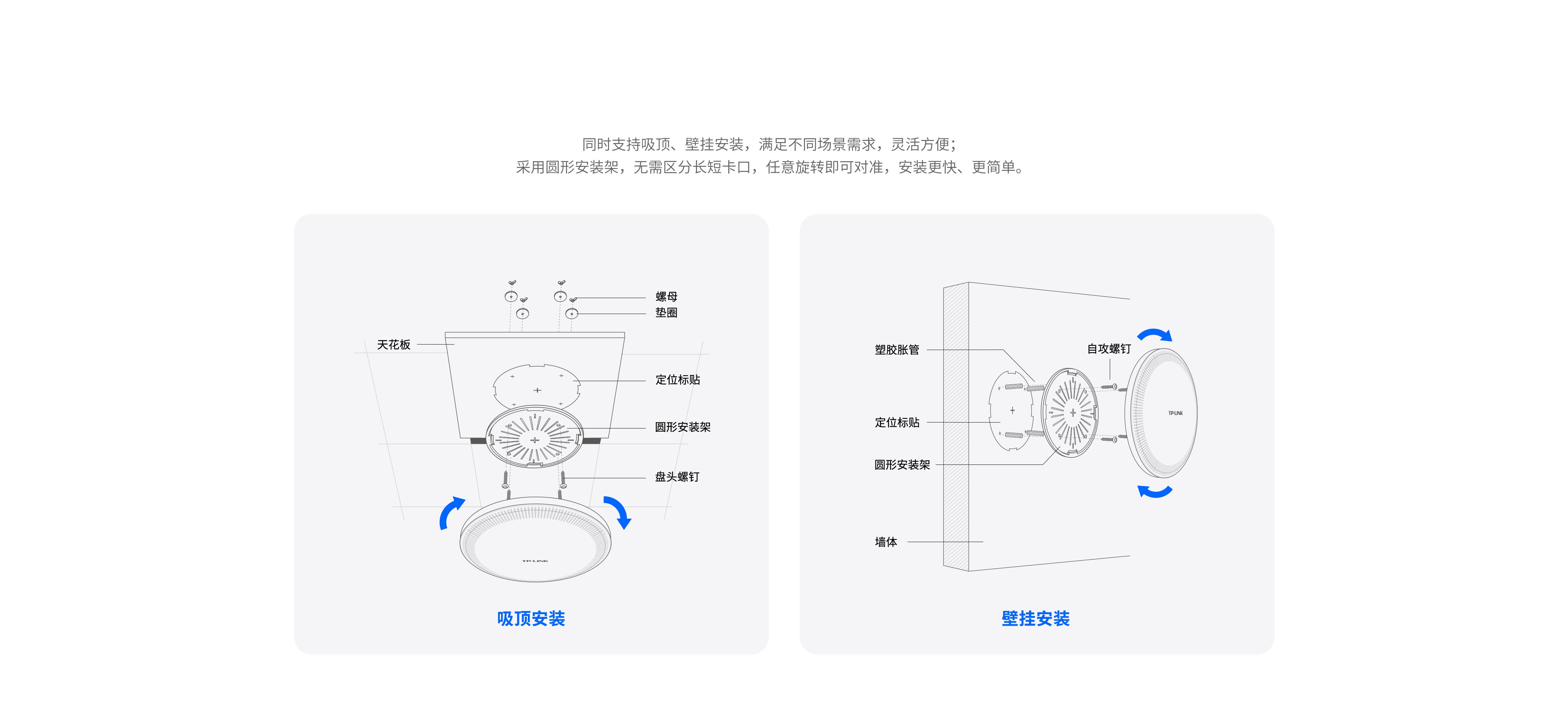 吸顶、壁挂两种安装方式可选