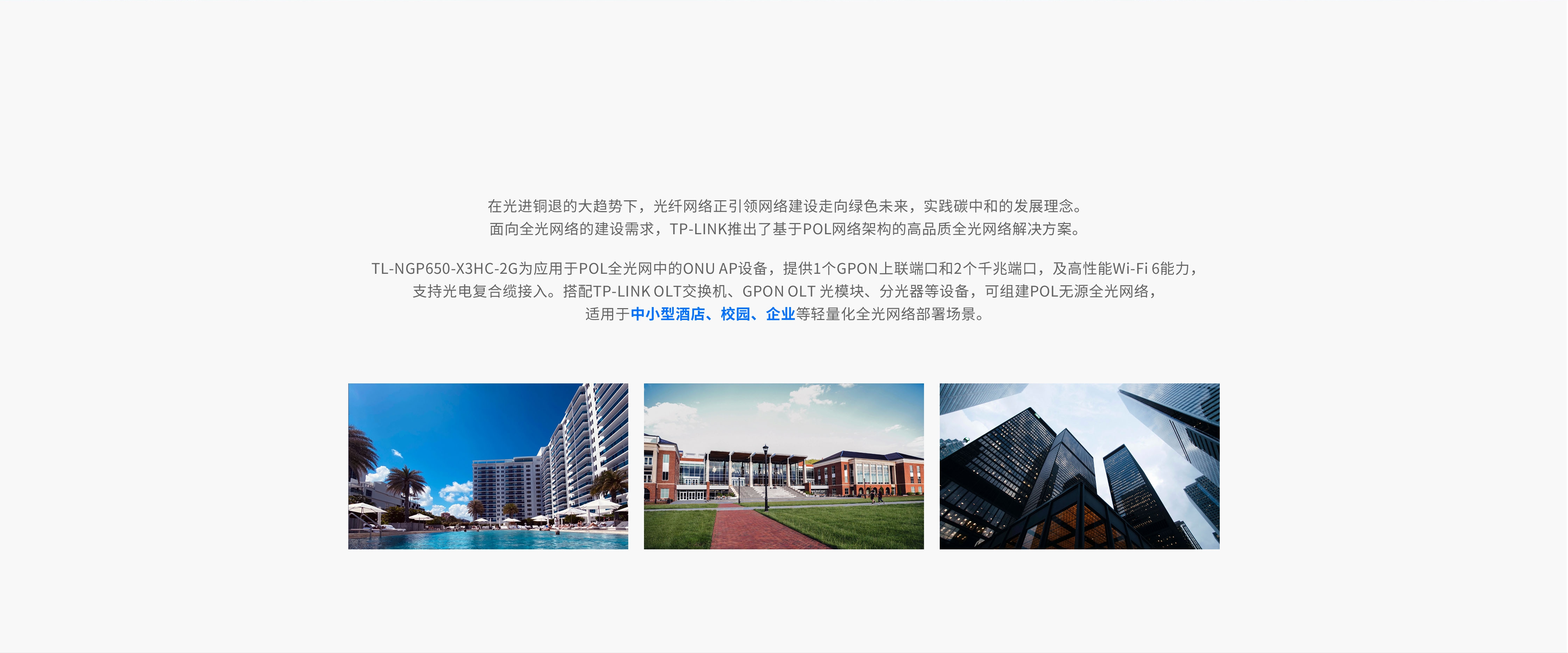 TP-LINK POL全光酒店解决方案,“一房一光纤多业务”,通过一根光纤承载宽带、电话、IPTV、Wi-Fi、
