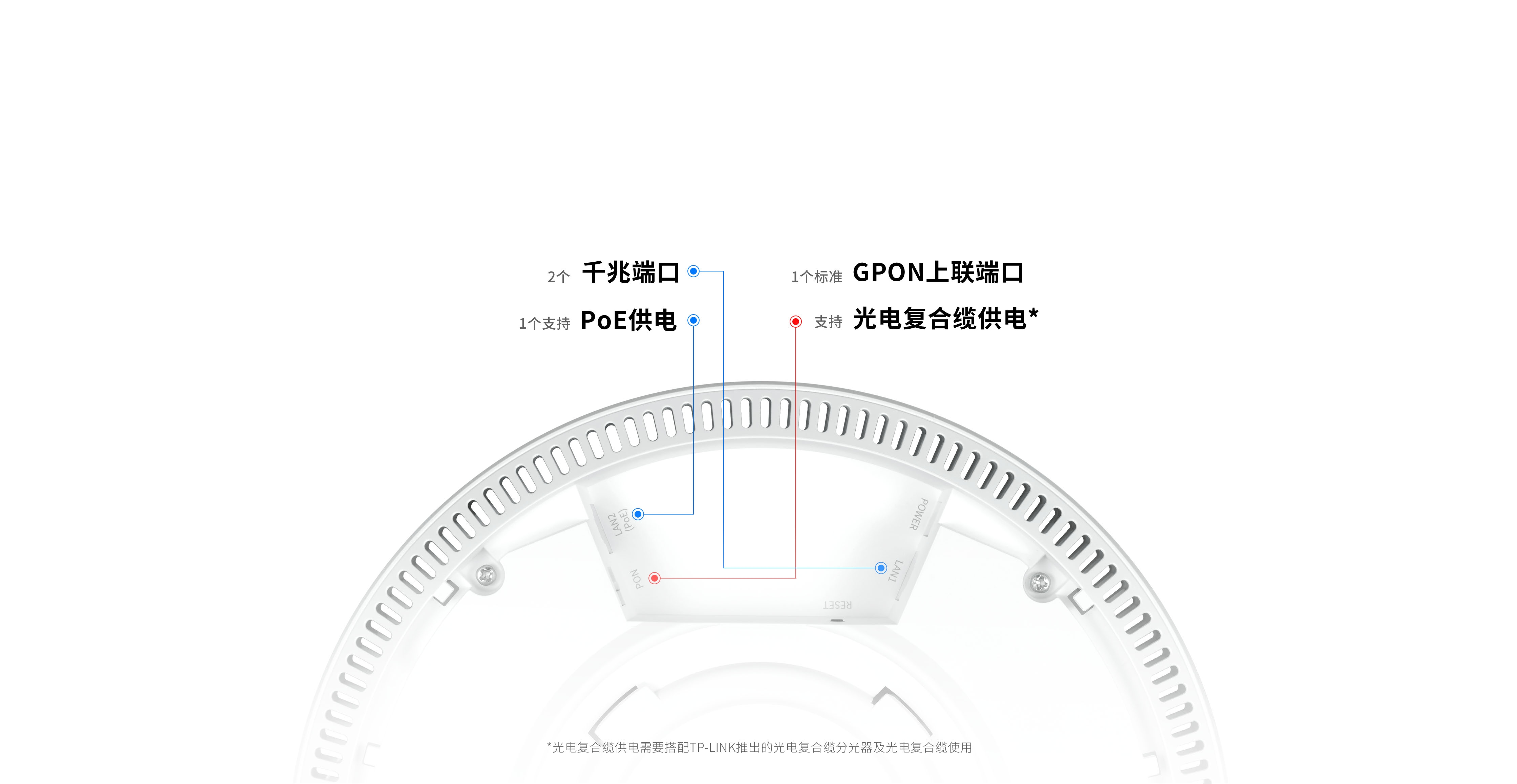 TL-NGP650-X3HC-2G为应用于POL全光网中的ONU AP,提供1个GPON上联端口和2个千兆以太网口。