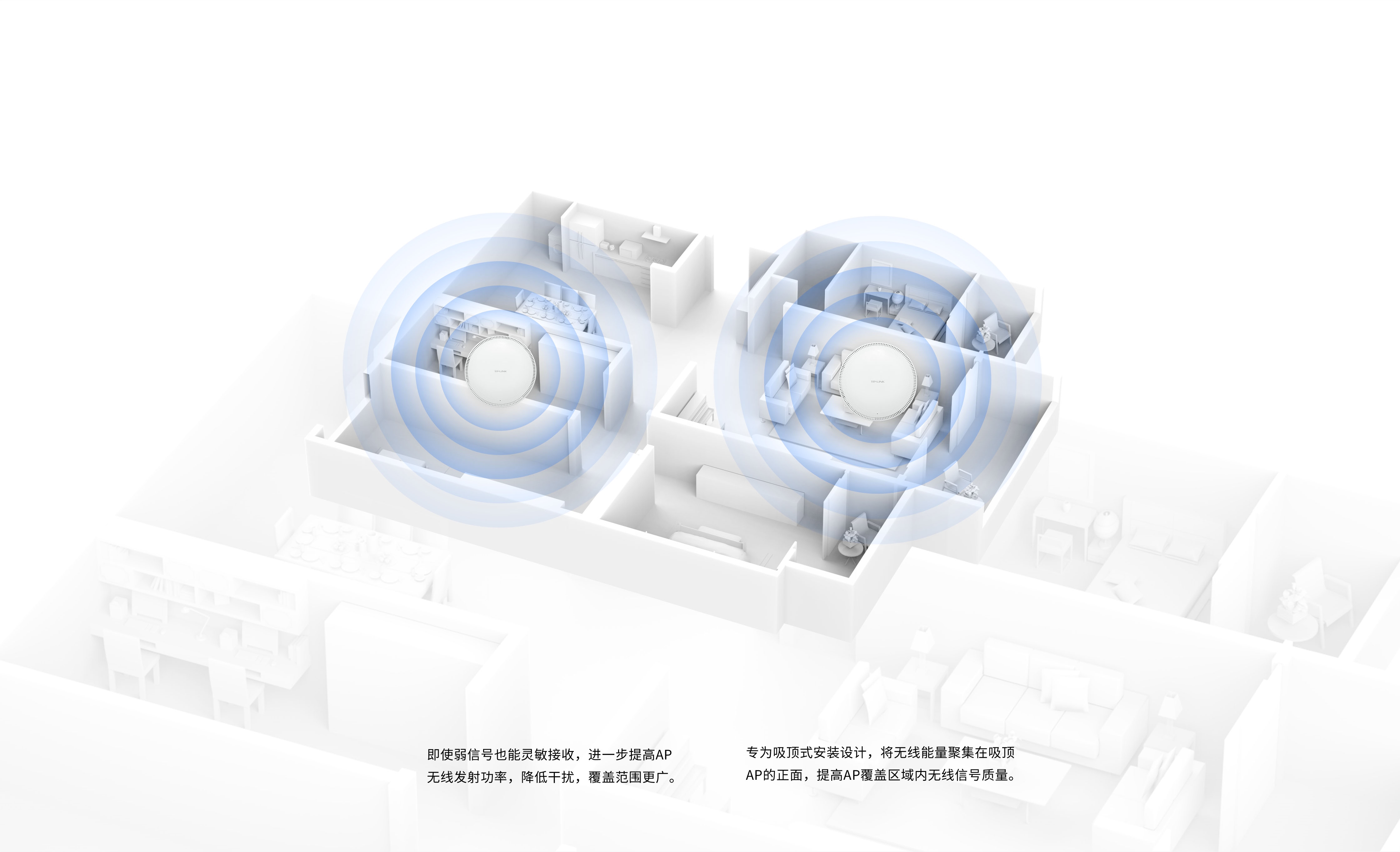 TL-NGP650-X3HC-2G外置4颗独立FEM,内置专业双频天线,覆盖范围广,信号质量佳,可轻松满足室内高密覆盖场景的上网需求。