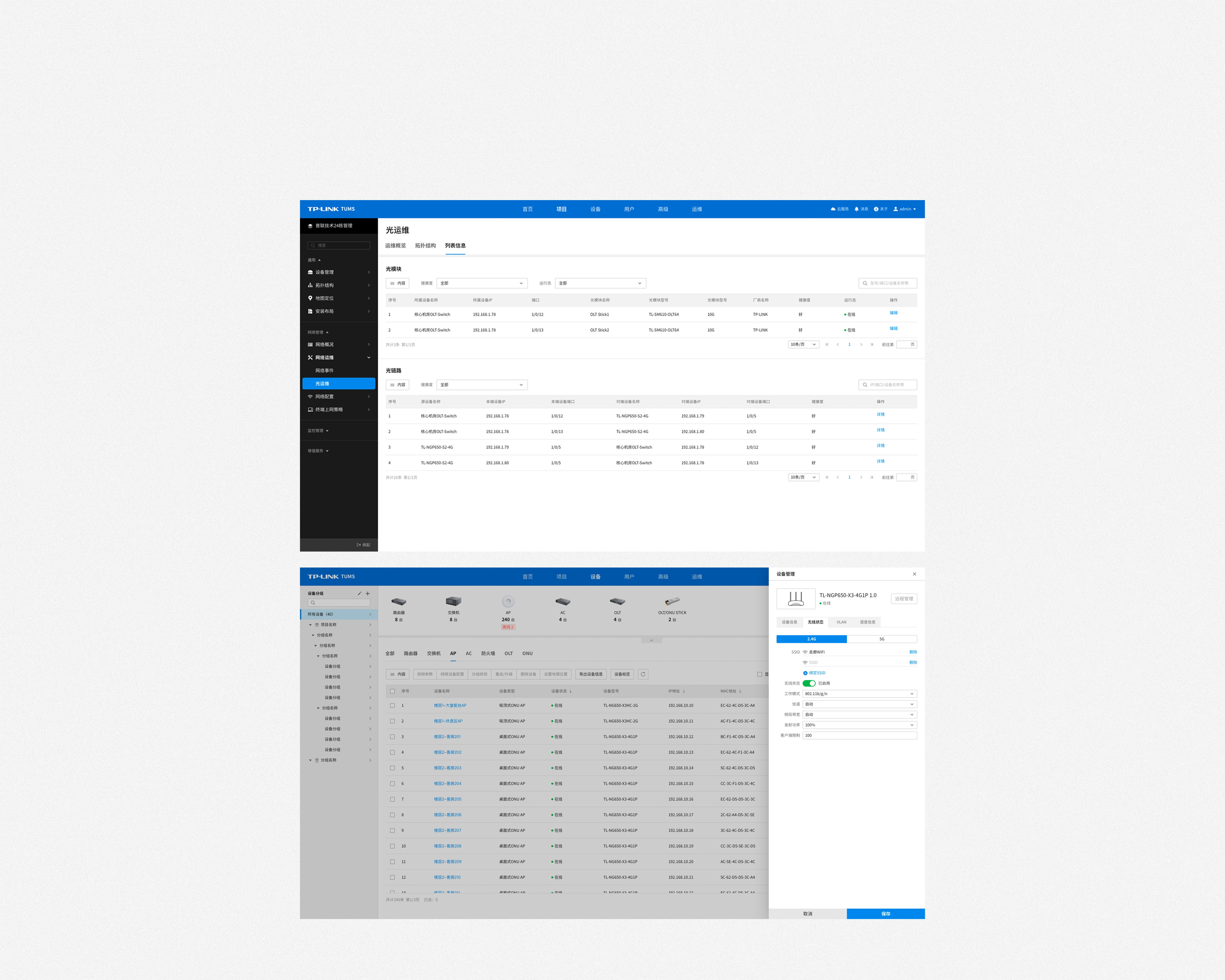 在设备层面,支持对光纤网络的全网设备进行集中运维管理,亦可实现对单一设备进行精细化管理。
