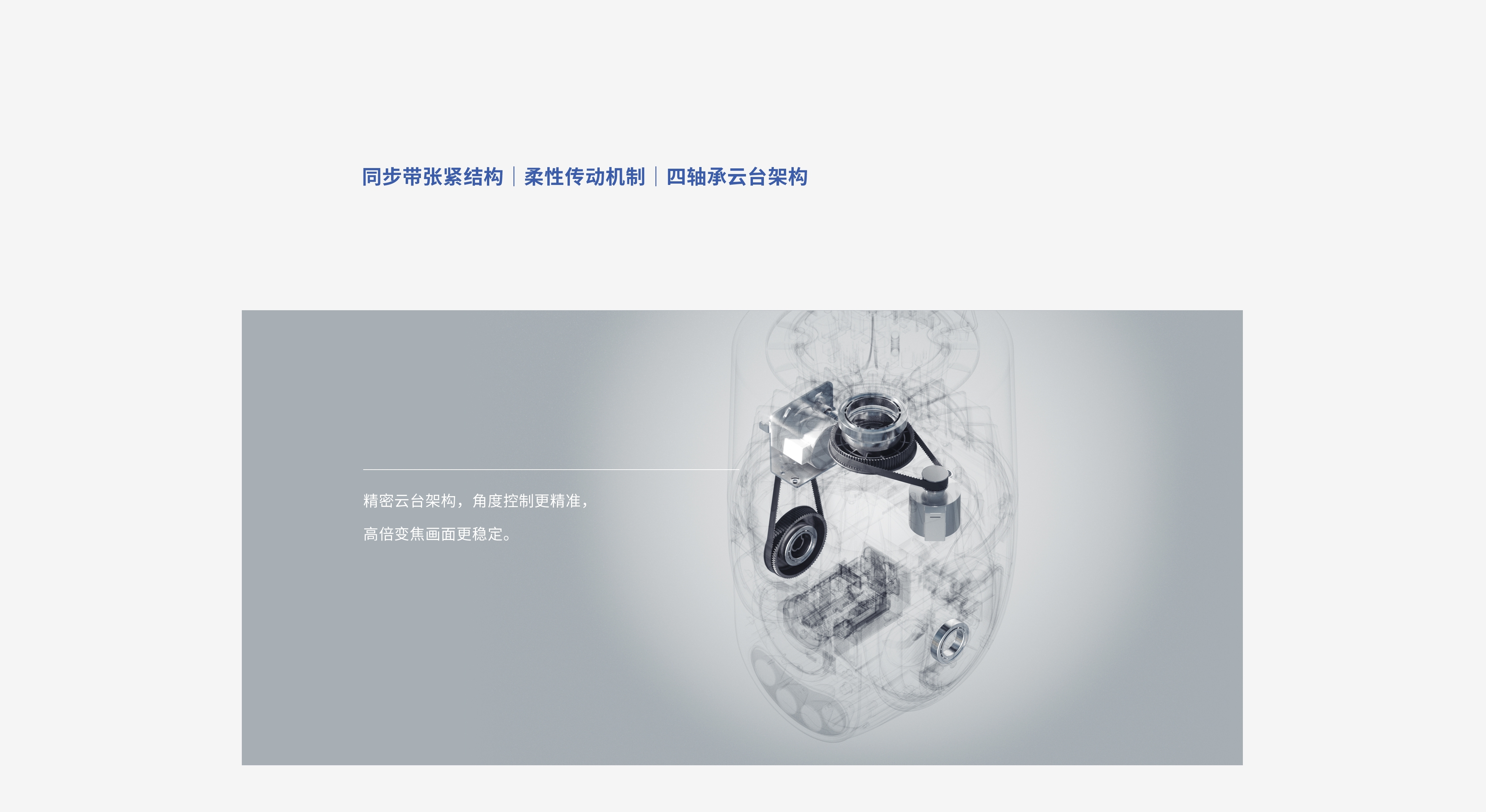 背隙更小,转动更平滑、寿命更长久。四轴承云台架构,水平大小轴承搭配运作,