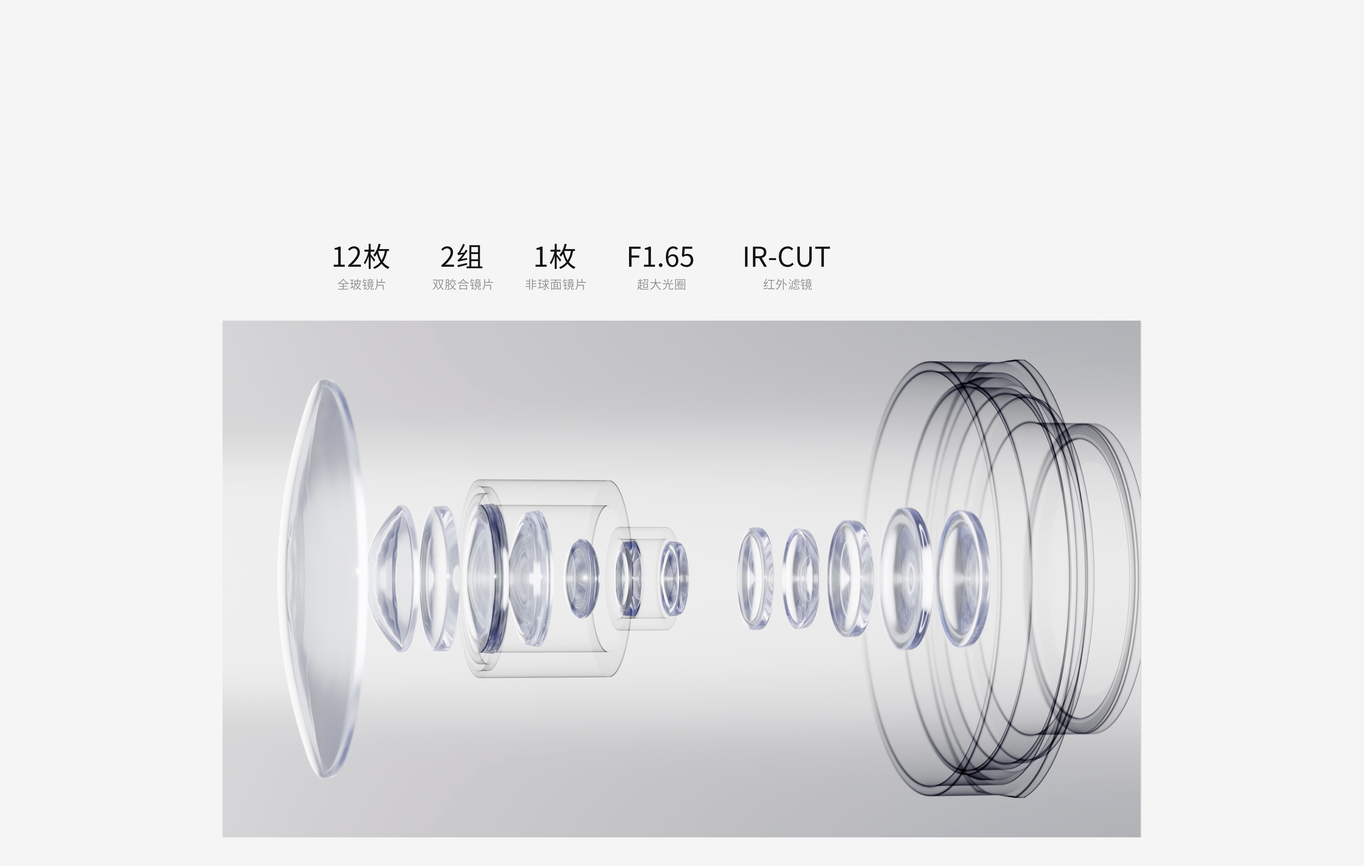 12枚全玻镜片,2组双胶合镜片有效控制色差,1枚非球面镜片大大提升像差矫正质量。