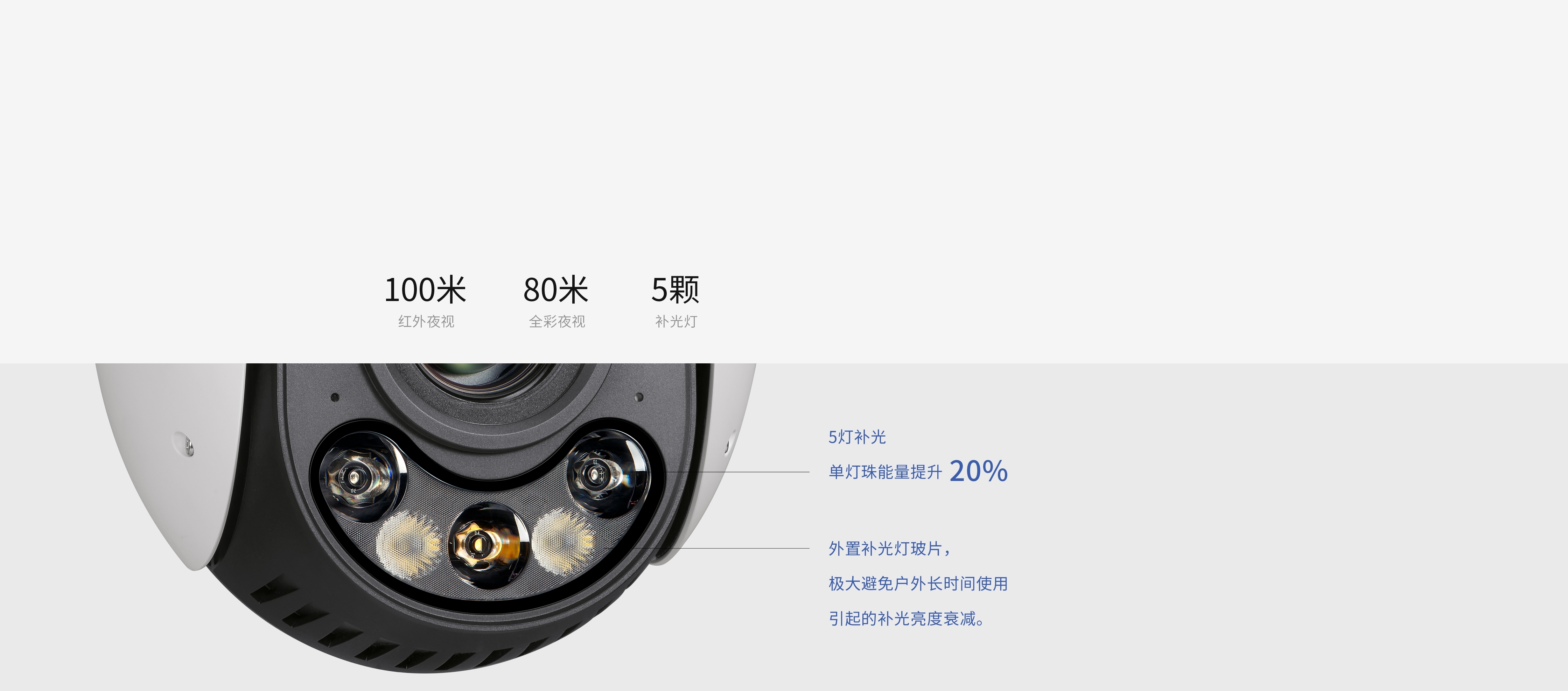 - 支持5颗补光灯补光,红外100米、白光80米补光距离,双光补光类型
