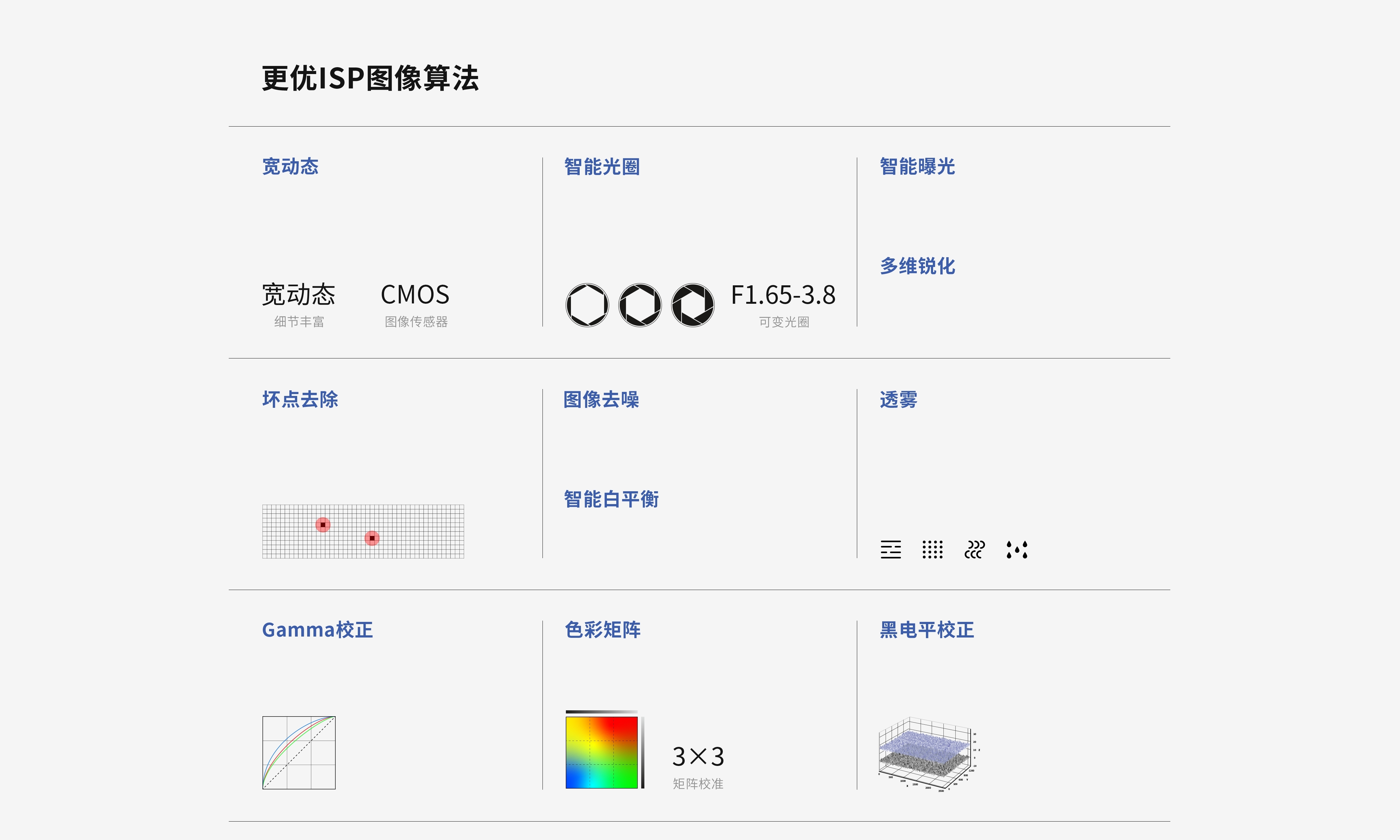 3×3矩阵校准,低照下仍可呈现鲜艳色彩。
